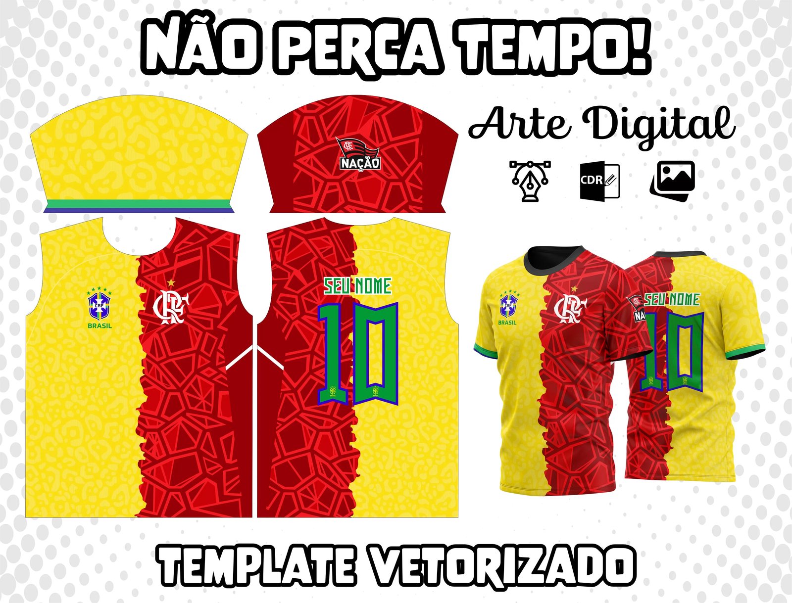 A arte para camiseta metade Flamengo, metade Brasil é perfeita para quem quer demonstrar sua paixão pelos dois amores. A estampa personalizada e criativa permite que os torcedores mostrem sua identidade única de maneira autêntica. Com a sublimação, a qualidade e durabilidade da camisa estampada são garantidas. Adquira já a sua e mostre sua torcida com estilo!