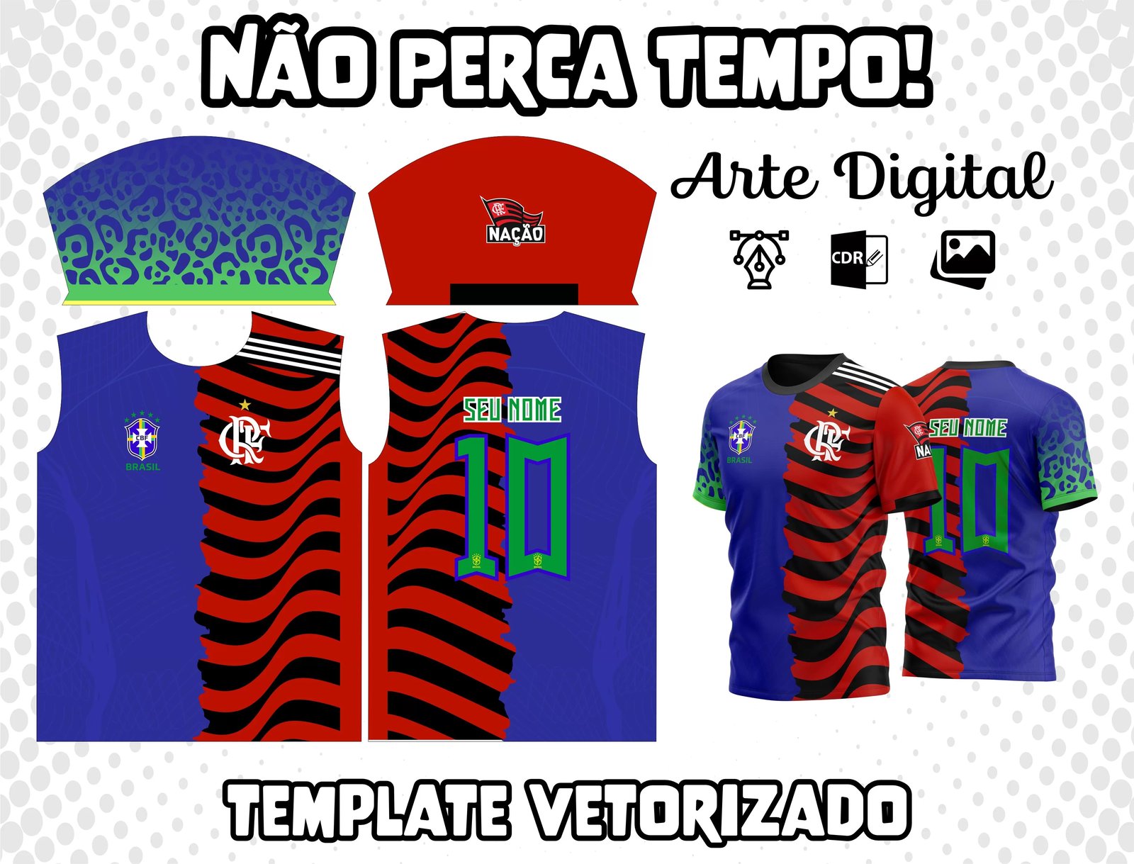 Imagina aquele dia de jogo, a emoção no estádio ou assistindo com os amigos, e você vestindo uma camiseta personalizada com a identidade do seu time. Essa é a sensação que o Arte Camisa do Flamengo Brasil m4 para Camisetas Unissex traz para você. Muito mais que um arquivo, é uma história de amor pelo Flamengo, pelo Brasil e pela torcida apaixonada que vibra em cada lance. Já pensou em usar uma camiseta que represente essa energia? Com este arquivo, você cria sua própria peça exclusiva.