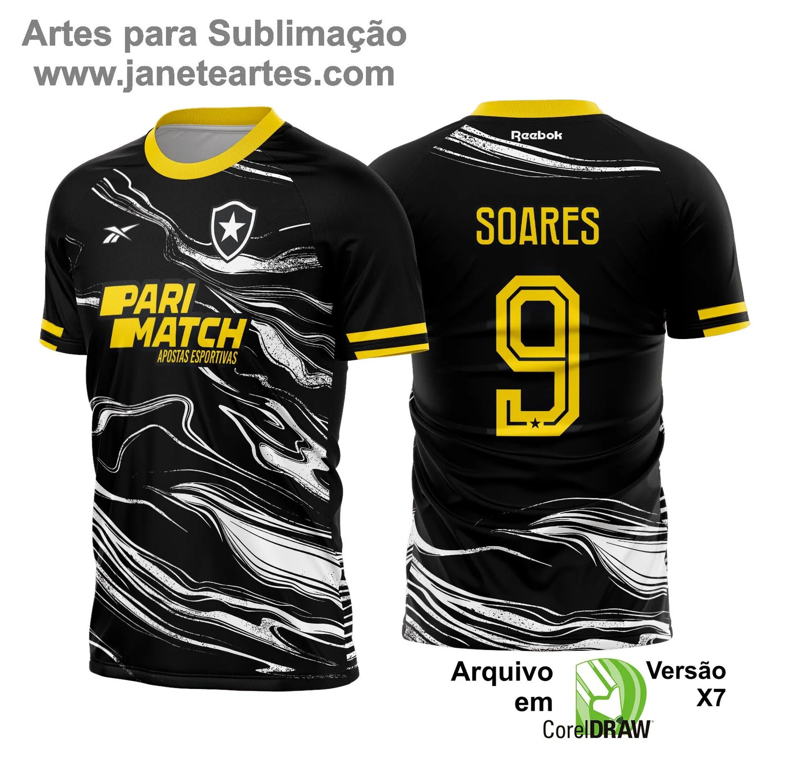 Conclusão: Com a Arte Vetor Camisa Botafogo, você tem um design exclusivo para homenagear o Botafogo e personalizar diversos produtos. Esse arquivo digital em formato CDR para sublimação oferece qualidade, flexibilidade e praticidade, possibilitando criar peças marcantes e de alta durabilidade.
