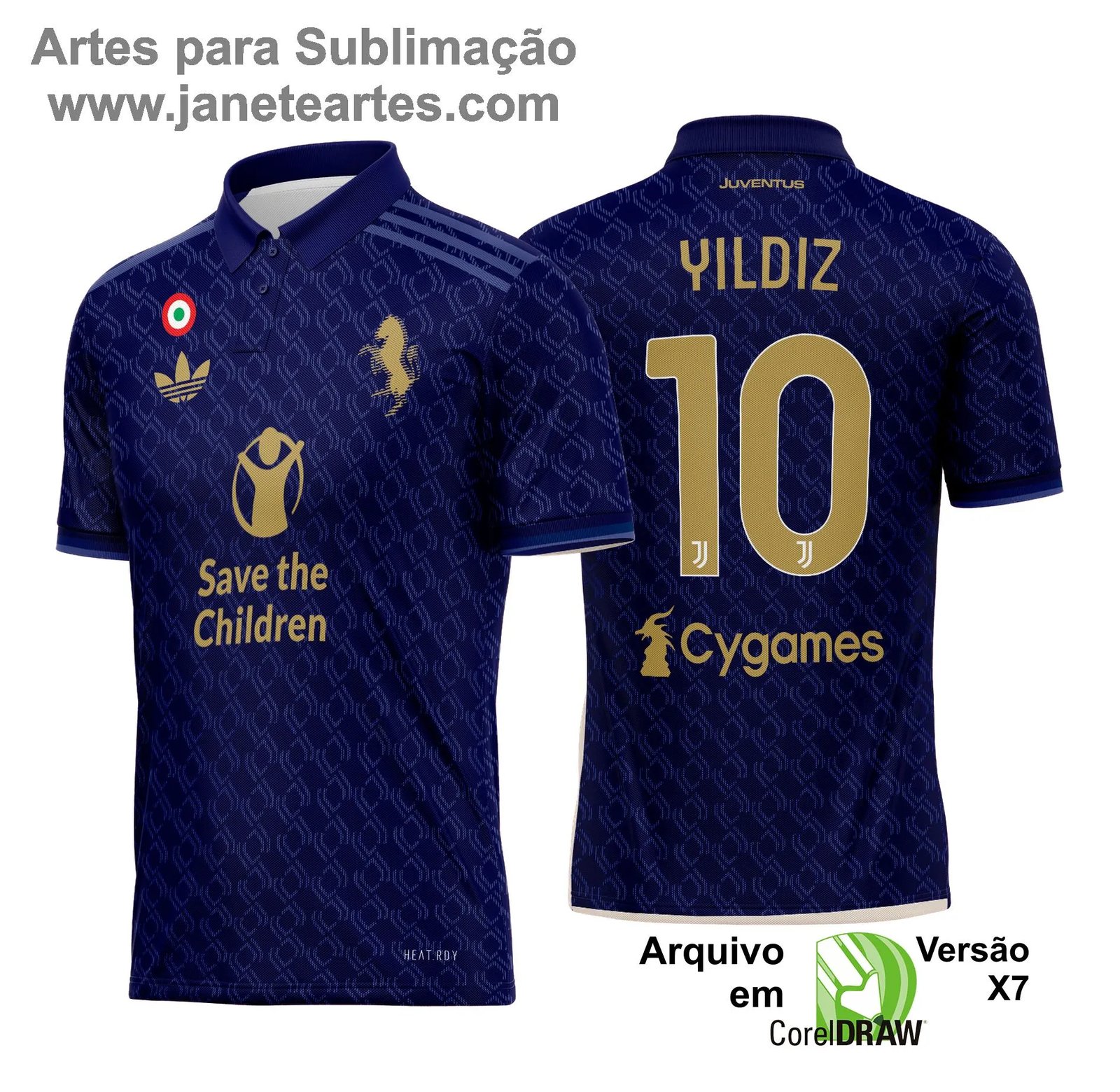Com um design vetorizado, editável e de fácil adaptação, a Arte Vetor Camisa Juventus permite que você personalize cores, tamanhos e detalhes para atender às suas necessidades. Seja para uniformes de times amadores, camisas promocionais ou produtos temáticos para torcedores apaixonados, esta arte combina versatilidade e impacto visual.