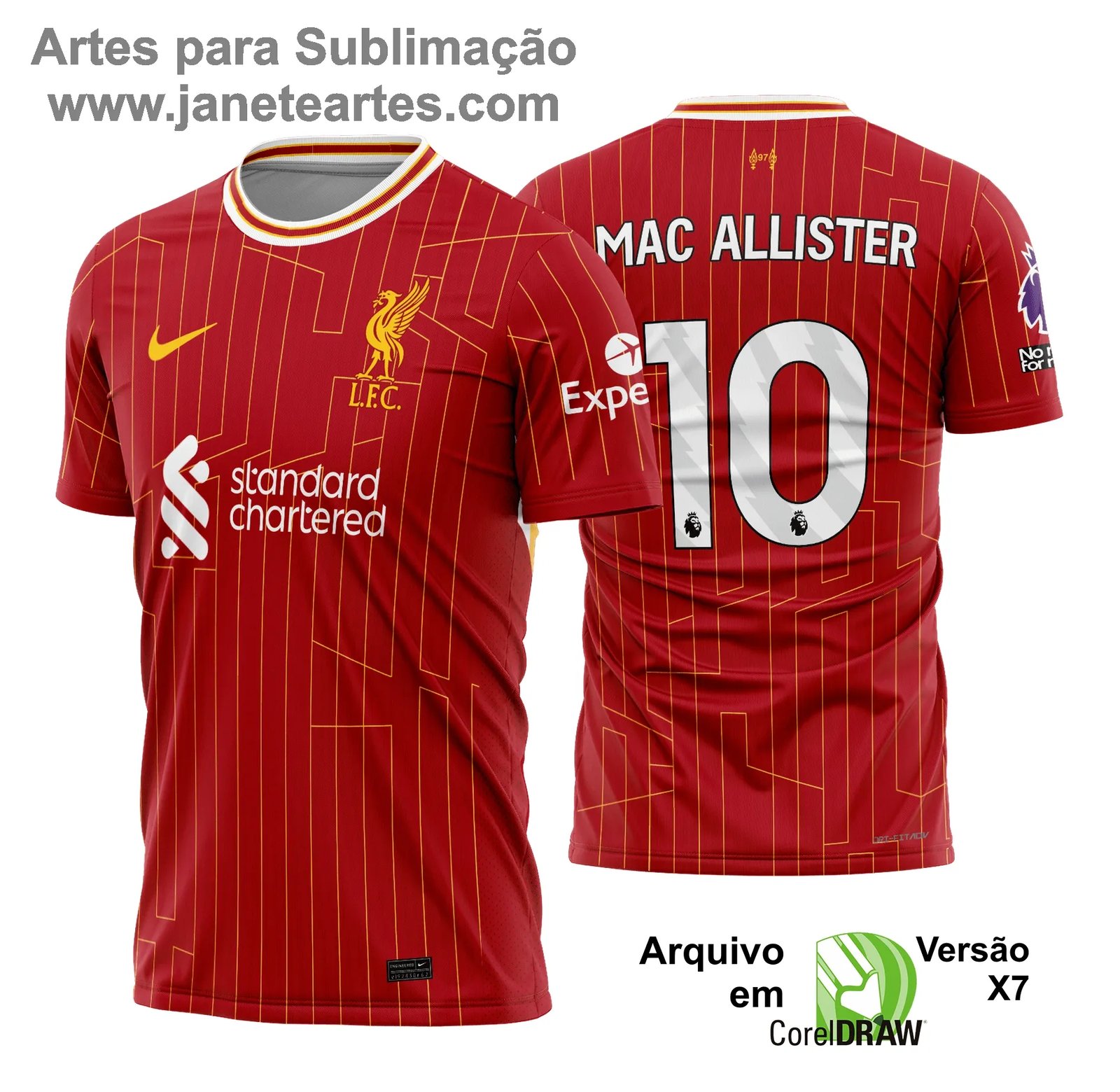 ⚠️ Atenção: Este é um produto digital. Após a confirmação do pagamento no site, você receberá a Arte Vetor Camisa Liverpool no formato CDR (.cdr x7) diretamente no e-mail cadastrado. O arquivo também ficará disponível na área do cliente para download sempre que desejar. Não há envio de produtos físicos.