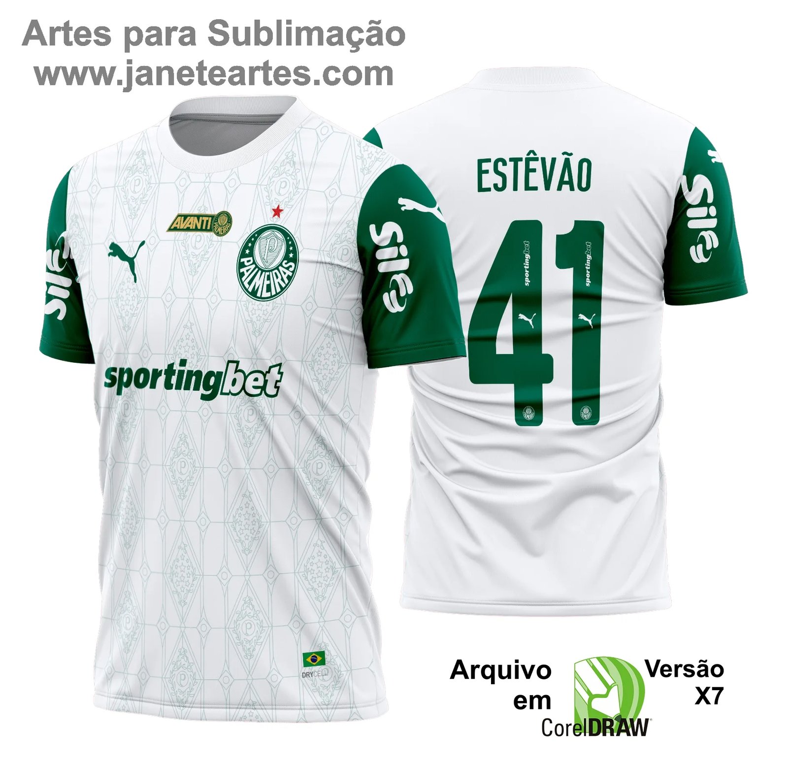 Se você é um apaixonado pelo Palmeiras ou trabalha com produtos personalizados, a arte vetor camisa Palmeiras é a escolha perfeita para criar camisas e outros itens exclusivos. O arquivo digital é preparado com alta qualidade e está pronto para o processo de sublimação.