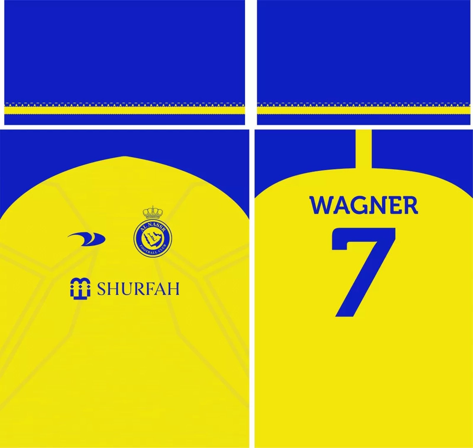 A arte vetorial da estampa da camisa do Al-Nassr é uma representação fiel da camisa titular do time saudita para a temporada 2022-2023. Esta arte pronta para sublimação permite que você crie seu próprio produto personalizado com o design oficial do Al-Nassr.