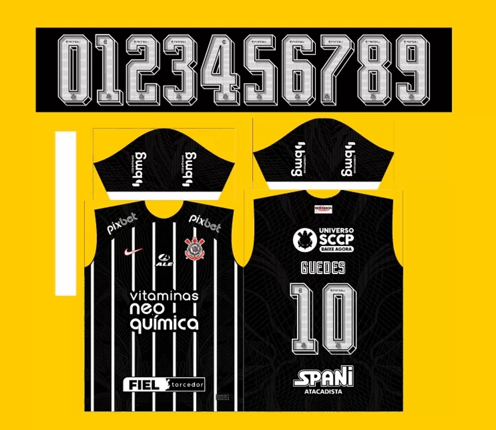 - Materiais de Alta Qualidade: Produzida com tecidos de alta qualidade, a Arte vetor Camisa Corinthians Reserva 2023-24 oferece conforto e durabilidade, permitindo que os torcedores a usem com orgulho dentro e fora do campo.