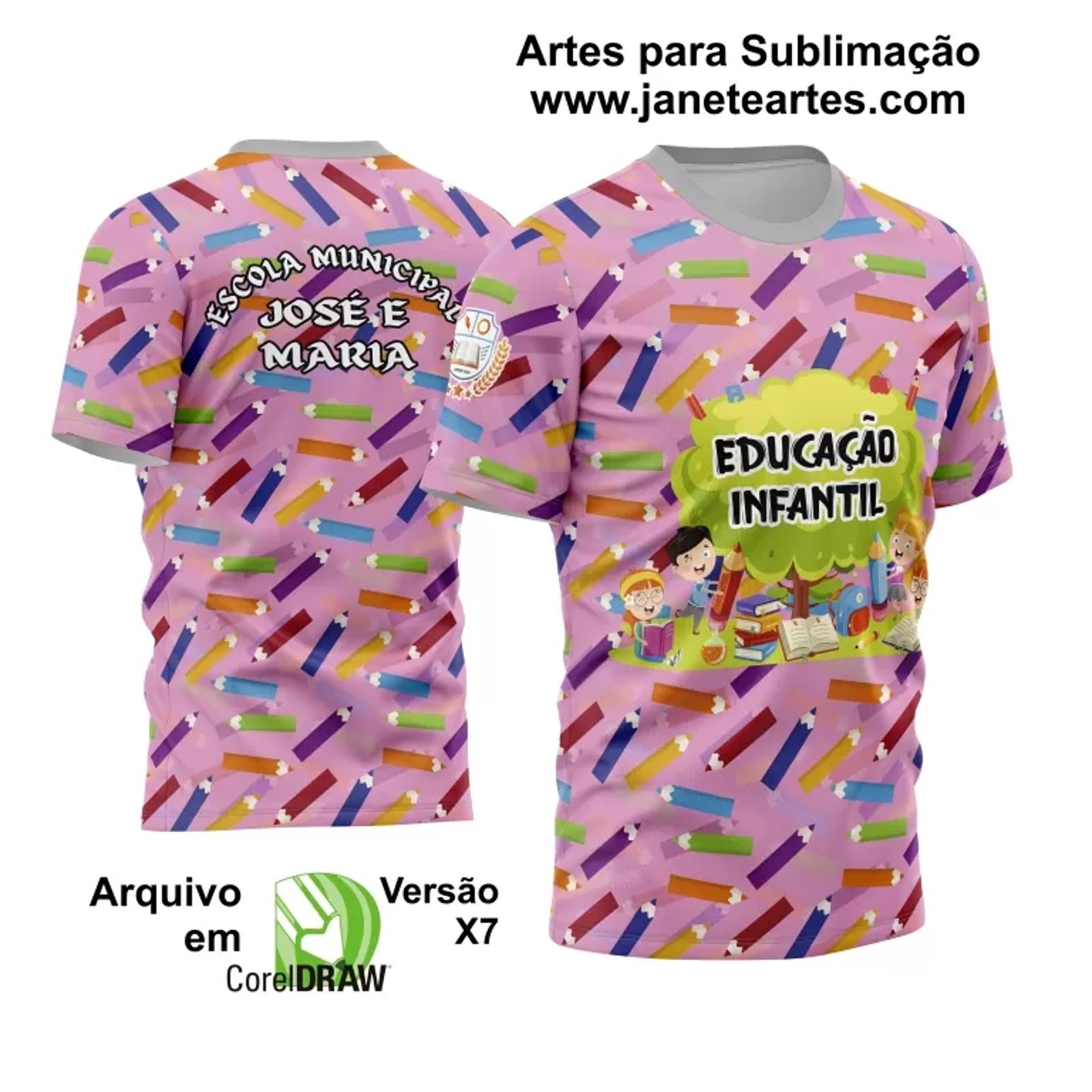 Camisa Professora Educação Infantil - Arte Vetor Estampa Template 2024 - 2025 Modelo 02