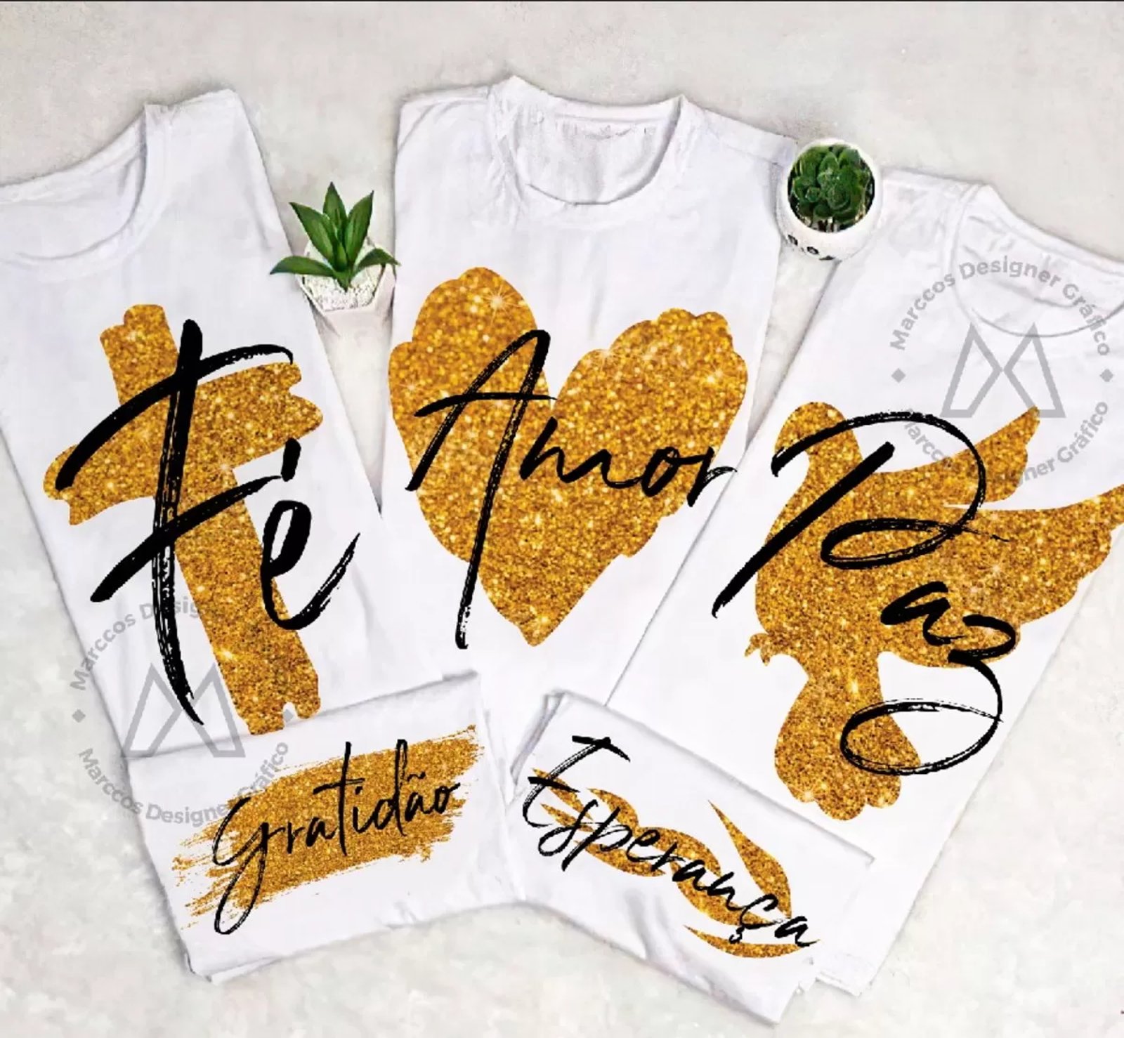 5 Artes Estampas Camisas Fé, Amor, Paz, Gratidão e Esperança