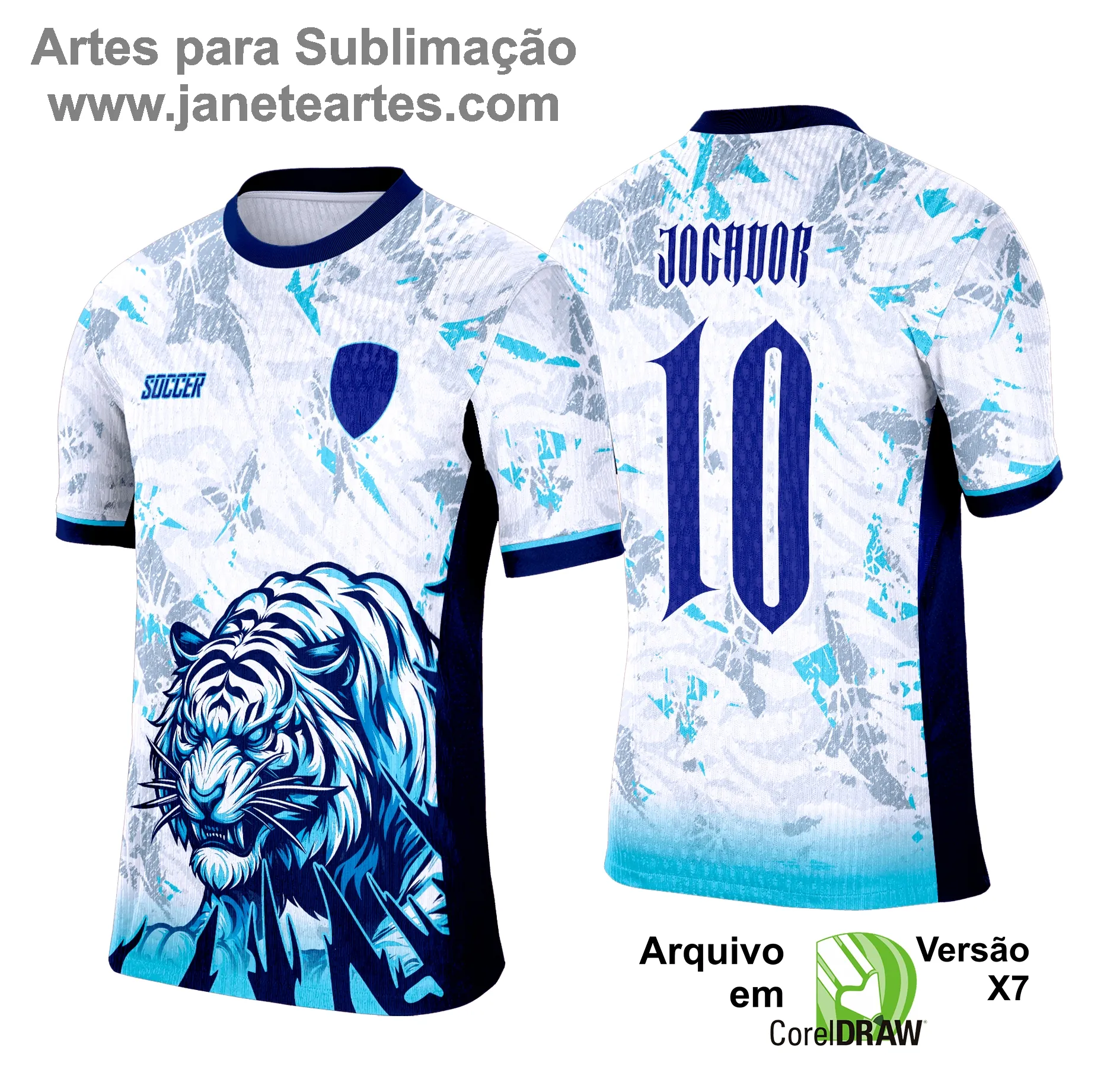 Ao adquirir este arquivo vetorial, você amplia seu portfólio com uma arte exclusiva e de alta qualidade, pronta para sublimação em diversos produtos. A Arte Camisa Interclasse Tigre Branco com Azul 2025 - 0005 permite criar coleções temáticas e incrementar suas vendas, fidelizando clientes e aumentando o faturamento! 📈