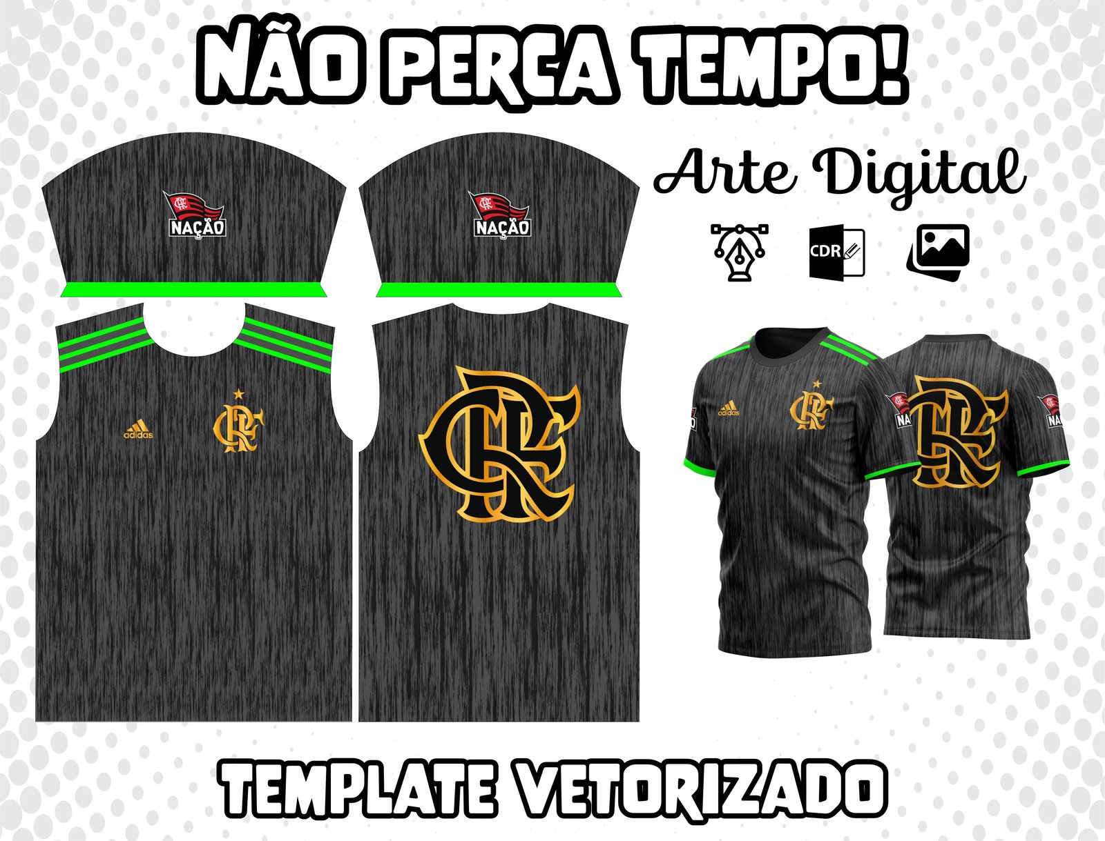 Ao adquirir o Arte Camisa do Flamengo, você recebe um arquivo CDR que contém a arte pronta para personalização. Compatível com diversos softwares de edição, é perfeito para quem deseja montar camisetas personalizadas em plotters ou impressoras especializadas.