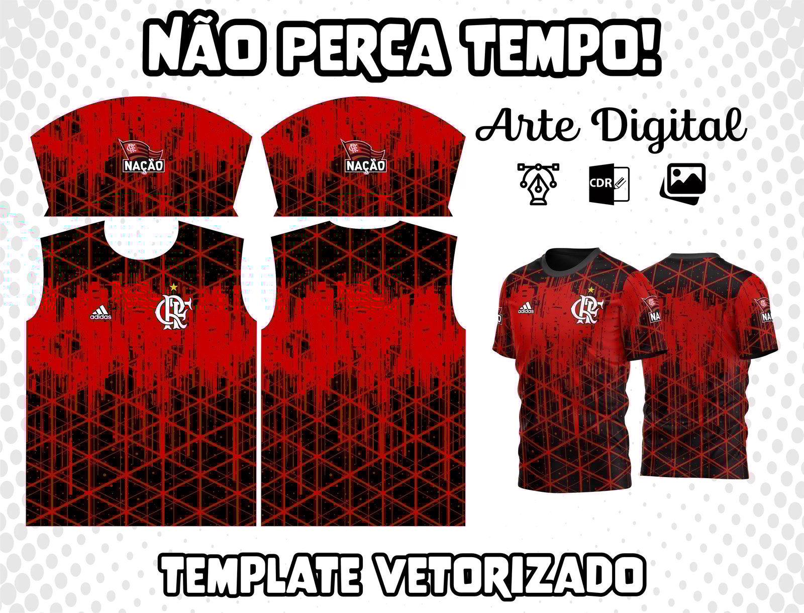 - O que recebo ao comprar? O arquivo no formato CDR para criar sua própria camisa personalizada.