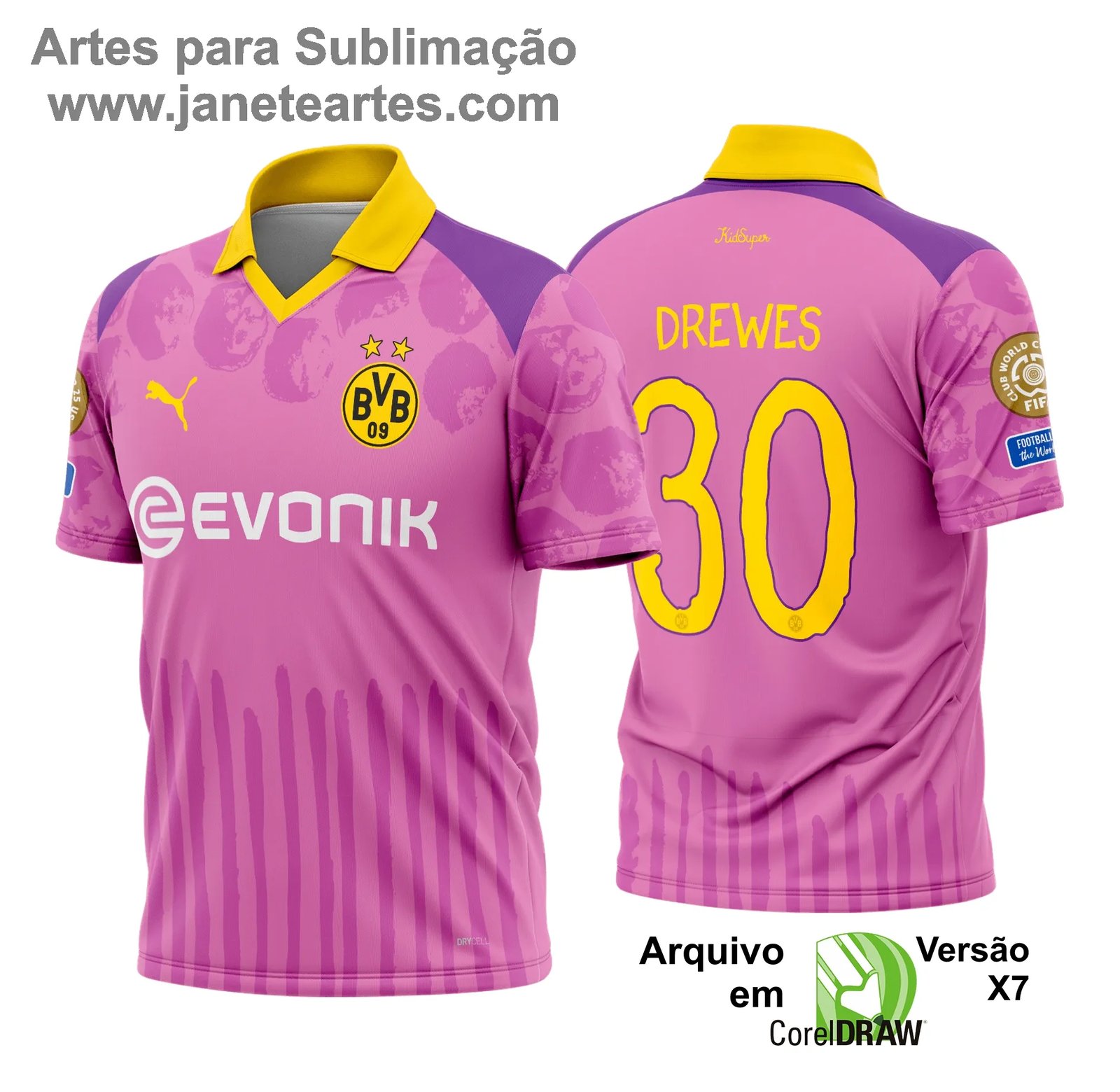 A Arte Estampa Camisa Borussia Dortmund foi criada para torcedores apaixonados e empreendedores que desejam levar o visual marcante do clube alemão para produtos personalizados. Com design fiel às cores e identidade do Borussia Dortmund, essa arte garante impacto visual e versatilidade.