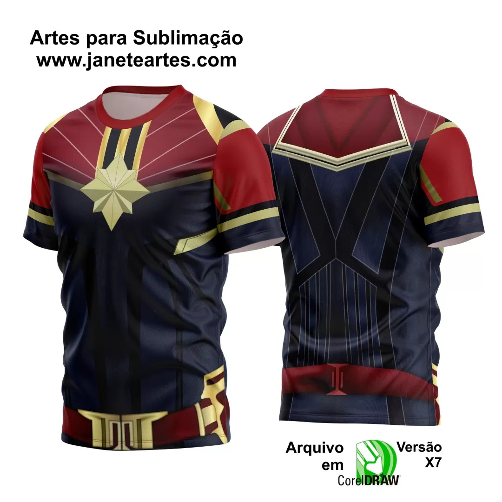 Arte Estampa Camisa Heróis - Capitã Marvel - Janete Artes