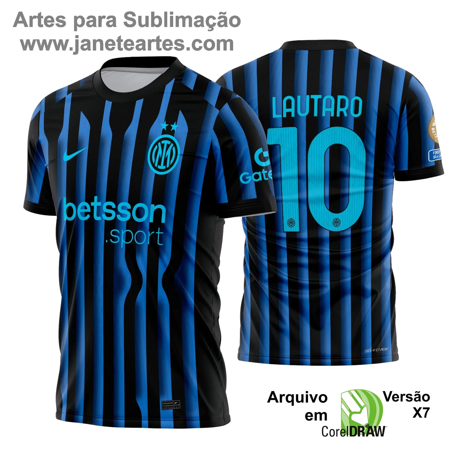Com a Arte Estampa Camisa Inter de Milão, você garante um design exclusivo, fiel ao clube e pronto para valorizar qualquer produto. Seja para uso próprio, presente ou revenda, essa arte transforma camisas, bonés e brindes em itens de destaque.