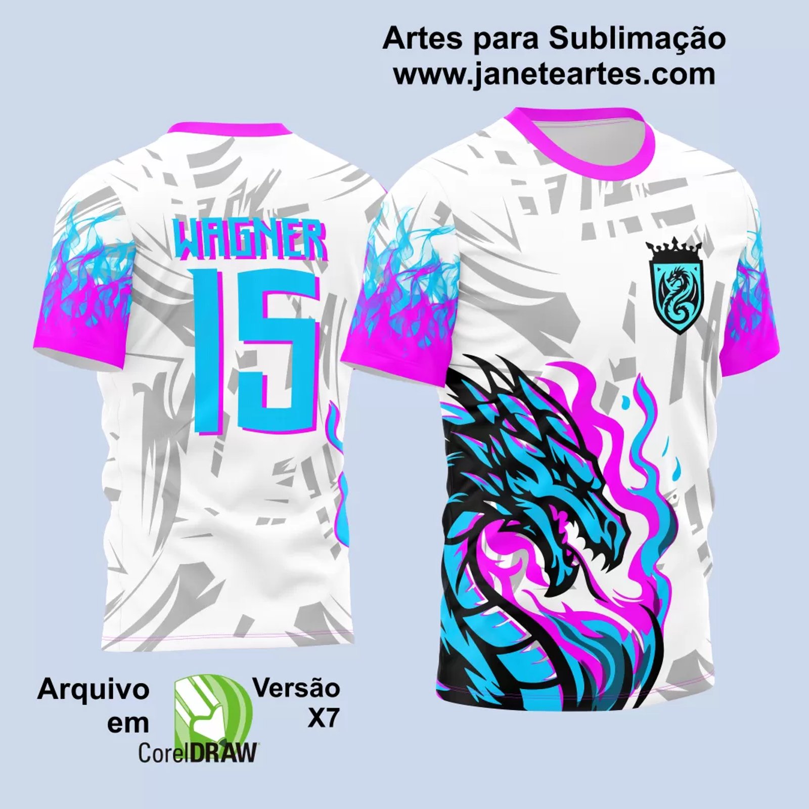 Arte Estampa Camisa Interclasse Dragão Rosa e Azul