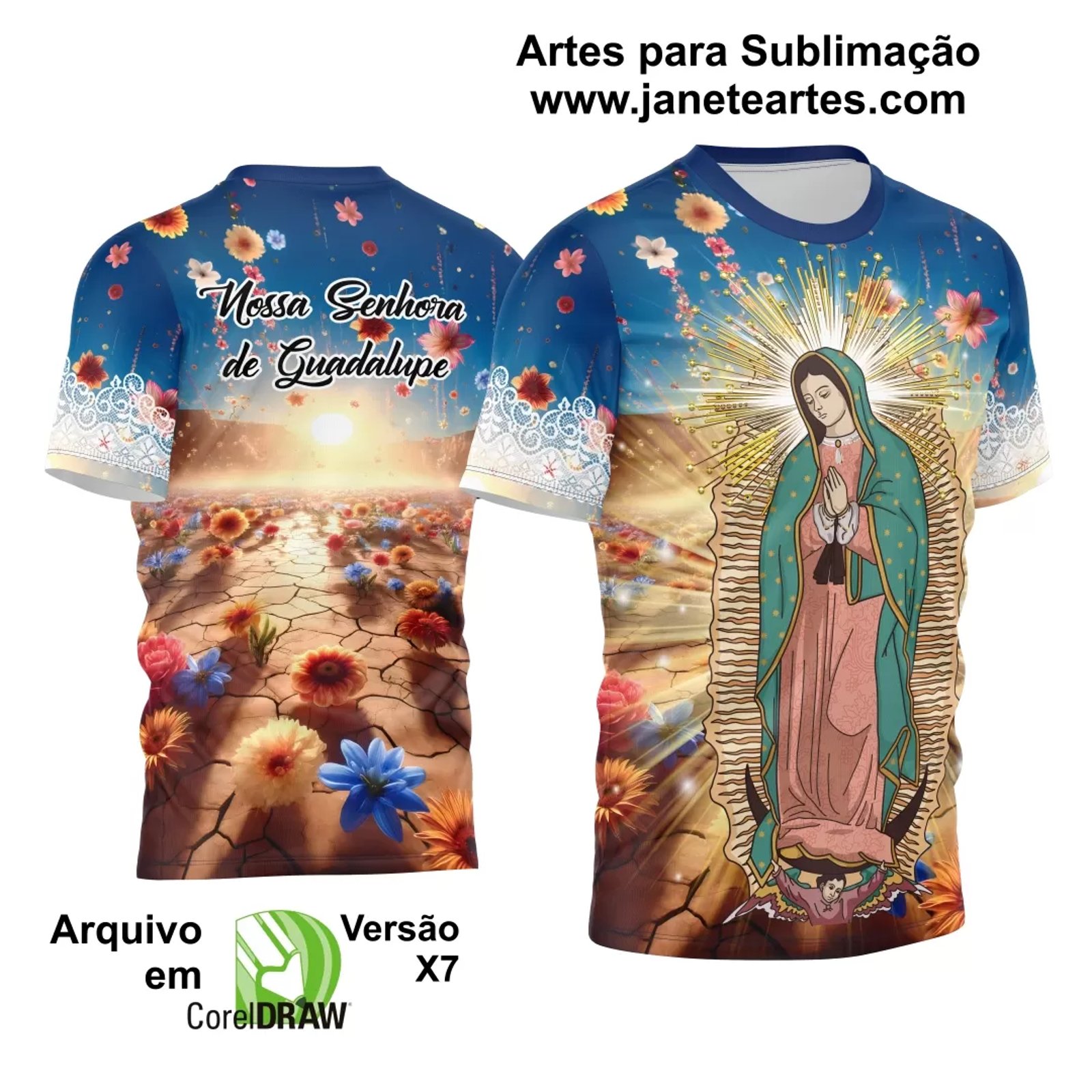 Adquira agora a Arte Estampa Camisa Nossa Senhora de Guadalupe 2026 e transforme seus produtos personalizados com um toque de fé e beleza. Este design digital em formato CDR (.cdr x7) é ideal para sublimação e oferece infinitas possibilidades de uso. Faça seu pedido hoje e leve a espiritualidade de Nossa Senhora de Guadalupe para suas criações.