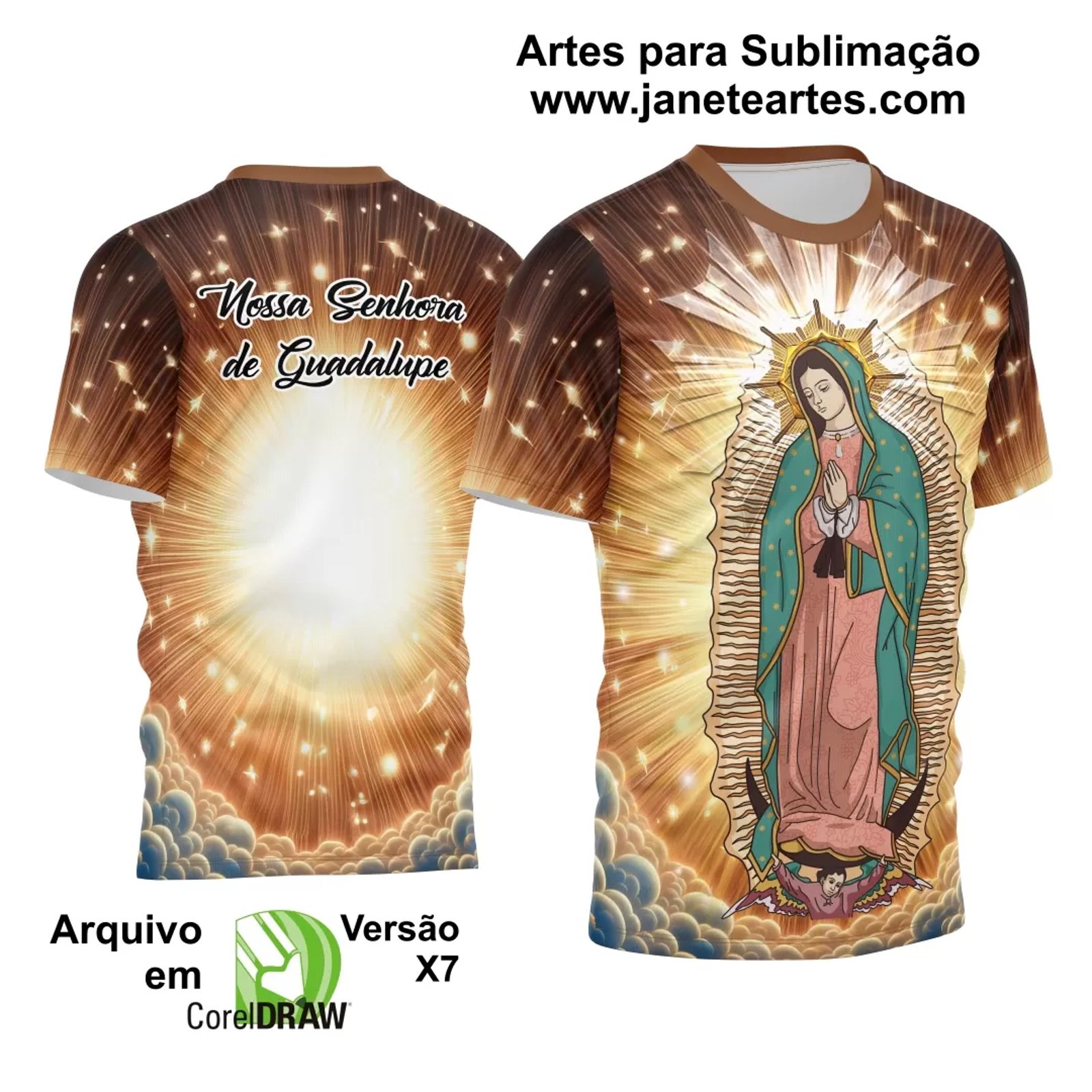 Este produto é um arquivo digital no formato CDR (.cdr x7). O envio é feito por e-mail e o download também fica disponível na área do cliente após a confirmação do pagamento.Imagine estar em uma procissão em homenagem a Nossa Senhora de Guadalupe, cercado por pessoas que compartilham a mesma fé e devoção. Entre elas, você veste uma camisa com a estampa marcante da padroeira, que logo chama a atenção pela arte vívida nas costas e o discreto logo no peito. A cada passo, você sente a conexão que essa imagem sagrada proporciona, unindo tradição e estilo de uma forma única. Essa foi a experiência de João, um jovem devoto que buscava uma maneira especial de expressar sua fé durante as celebrações de sua comunidade. A arte da camisa transformou um momento simples em uma lembrança emocionante, onde cada detalhe da estampa contava uma história de proteção e esperança.