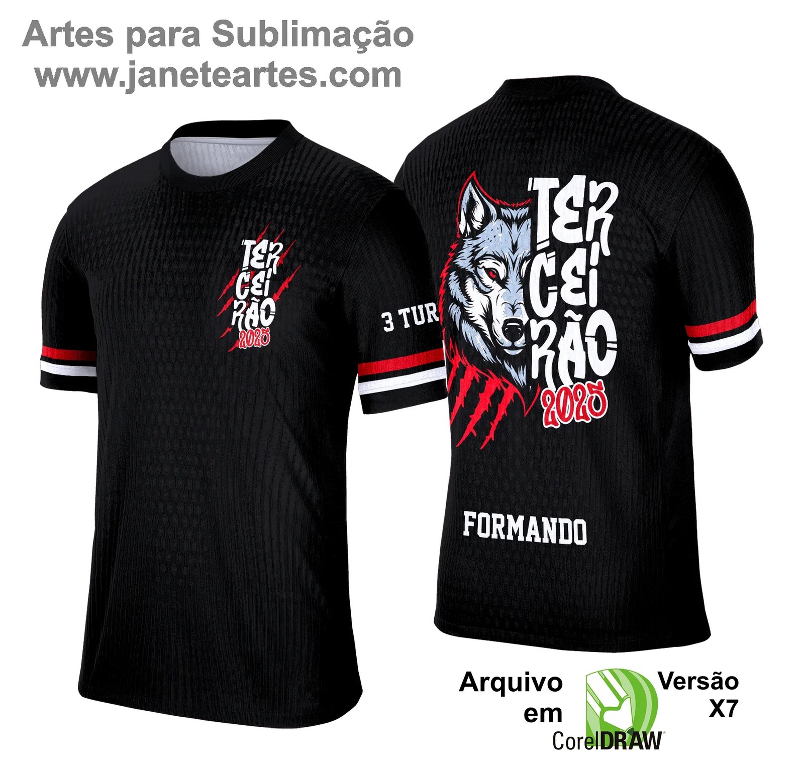 Se você quer uma camisa exclusiva para seu terceirão, esta arte digital foi feita para você! O arquivo vetorizado permite personalizar camisetas para a turma com alta qualidade e pode ser usado para diversos tipos de impressão, como: