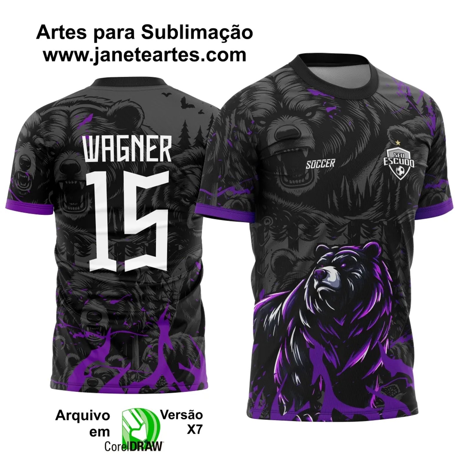 Arte Template Camisa Interclasse Urso Roxo - 0072