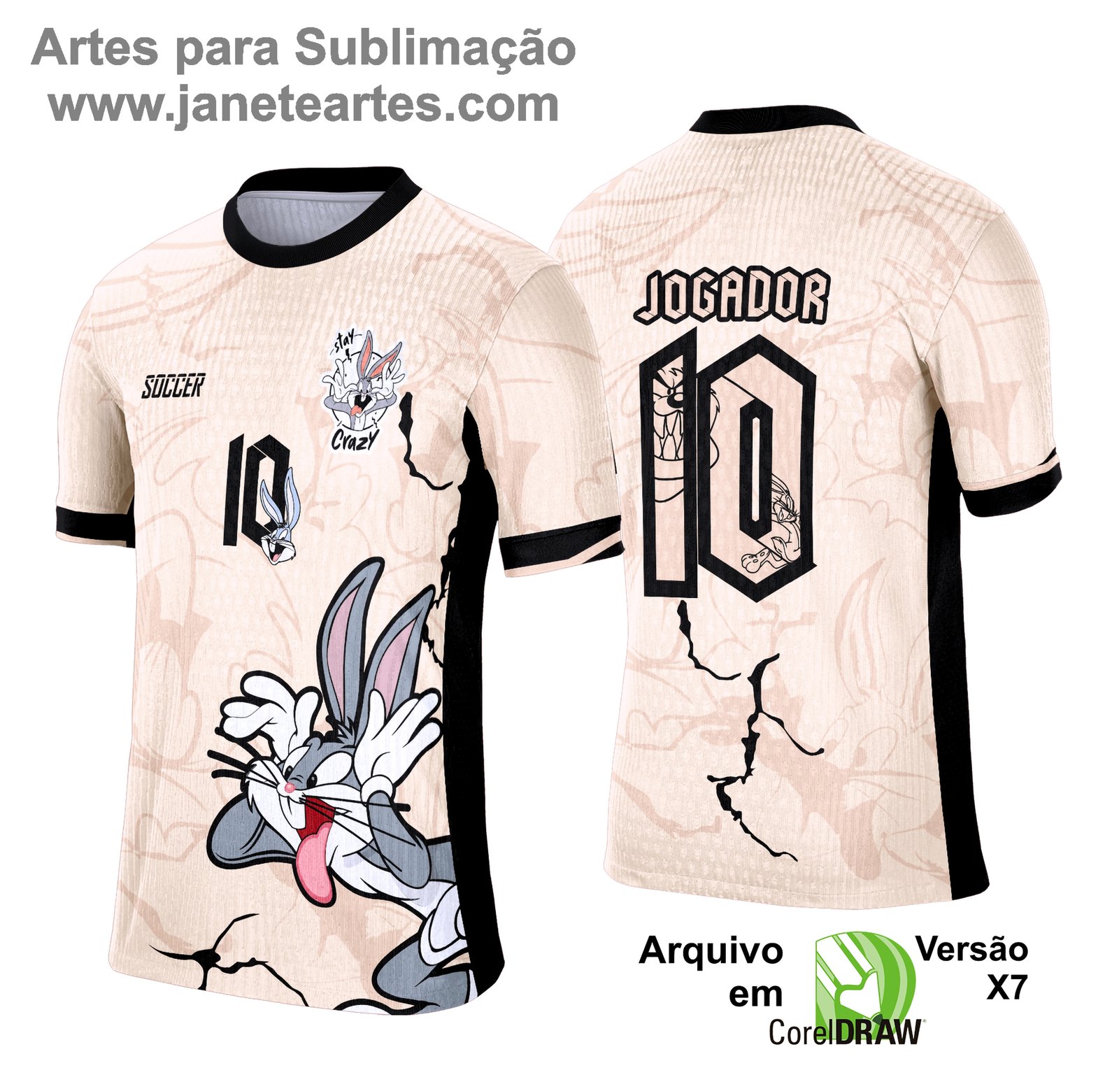 A Arte Camisa Interclasse Pernalonga é entregue em vetor, no formato CDR, o que garante compatibilidade com softwares de edição e personalização. Após o pagamento, você recebe o arquivo direto na sua área do cliente ou por e-mail, pronto para ser utilizado em gráficas, estamparias e ateliês de sublimação.