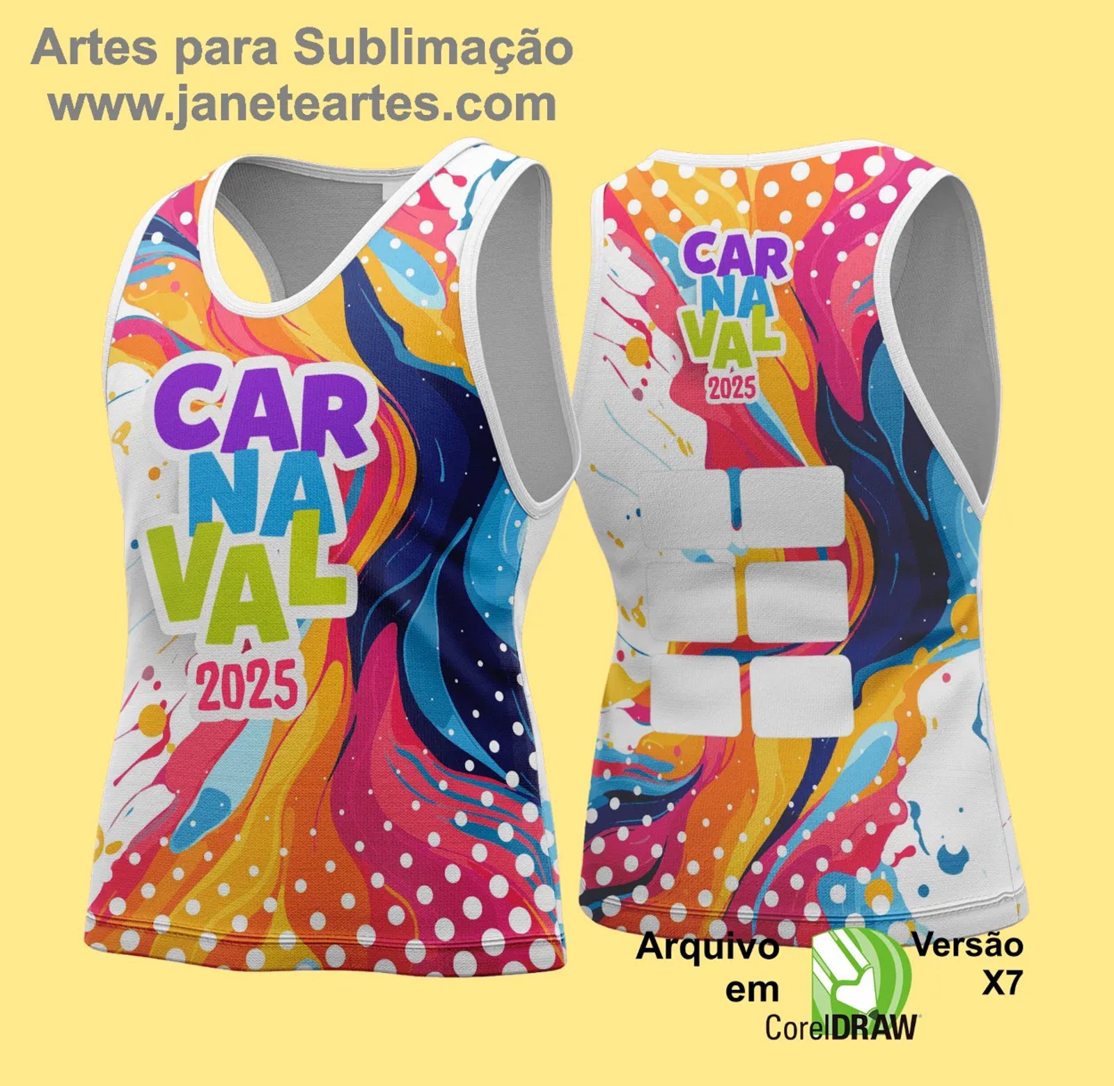 A arte foi desenvolvida pensando em profissionais que trabalham com sublimação e outras técnicas de impressão, garantindo qualidade e versatilidade para a criação de abadás temáticos e impactantes.