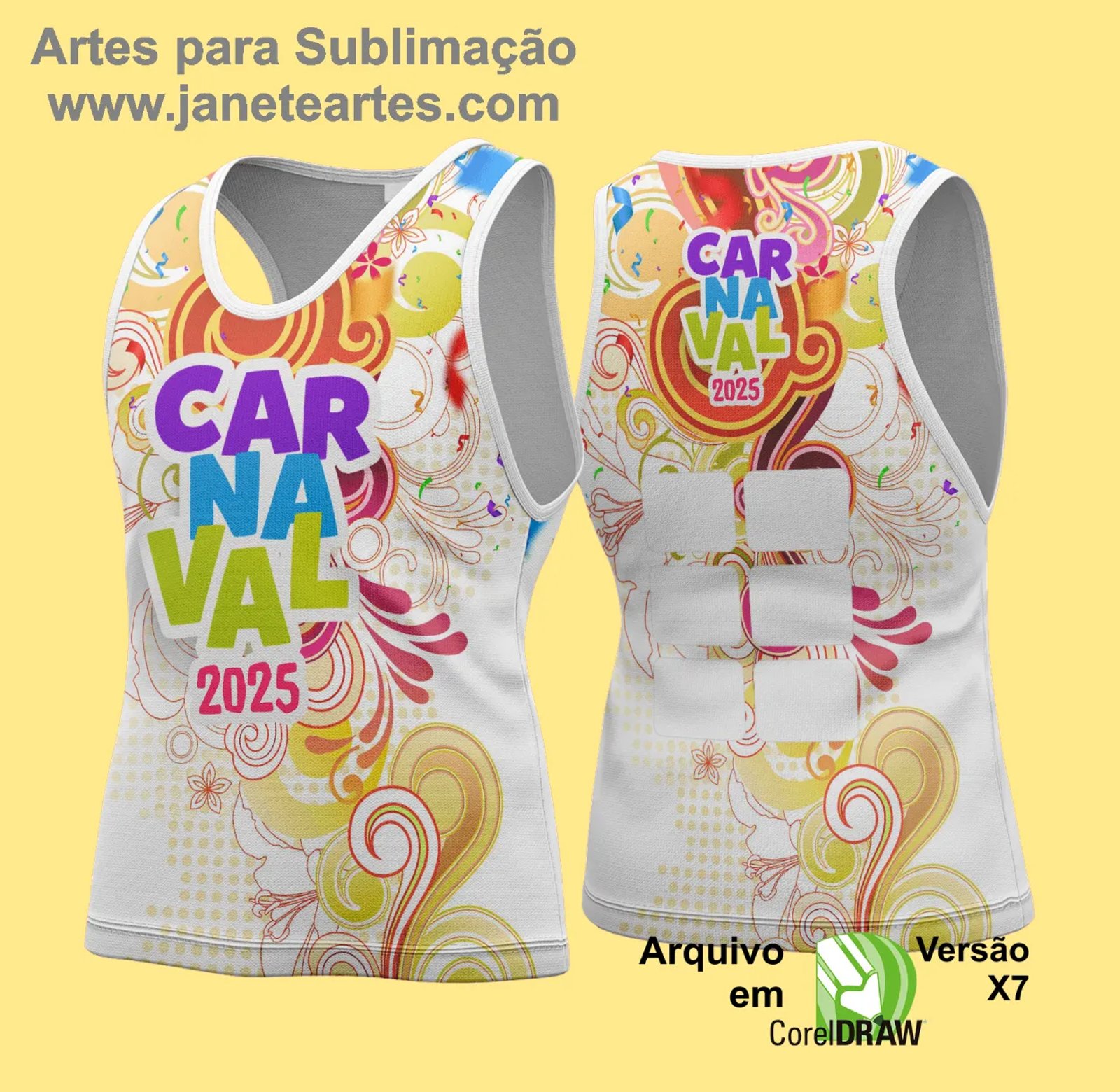 Com esta arte, você pode produzir abadás criativos e impactantes para festas, blocos e eventos carnavalescos, adaptando o design às necessidades do seu público.