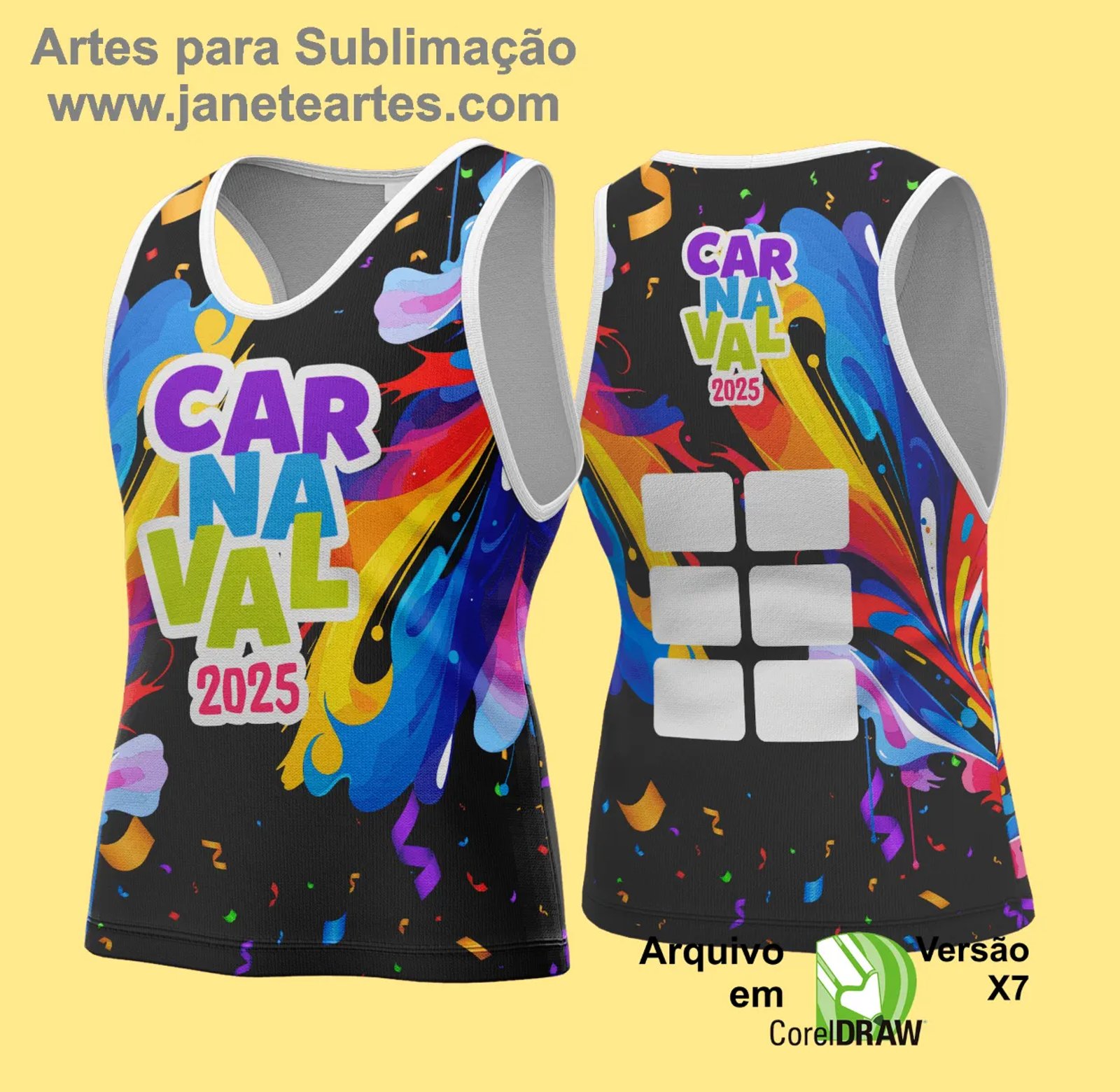 Com esta arte, você pode produzir abadás criativos e impactantes para festas, blocos e eventos carnavalescos, adaptando o design às necessidades do seu público.
