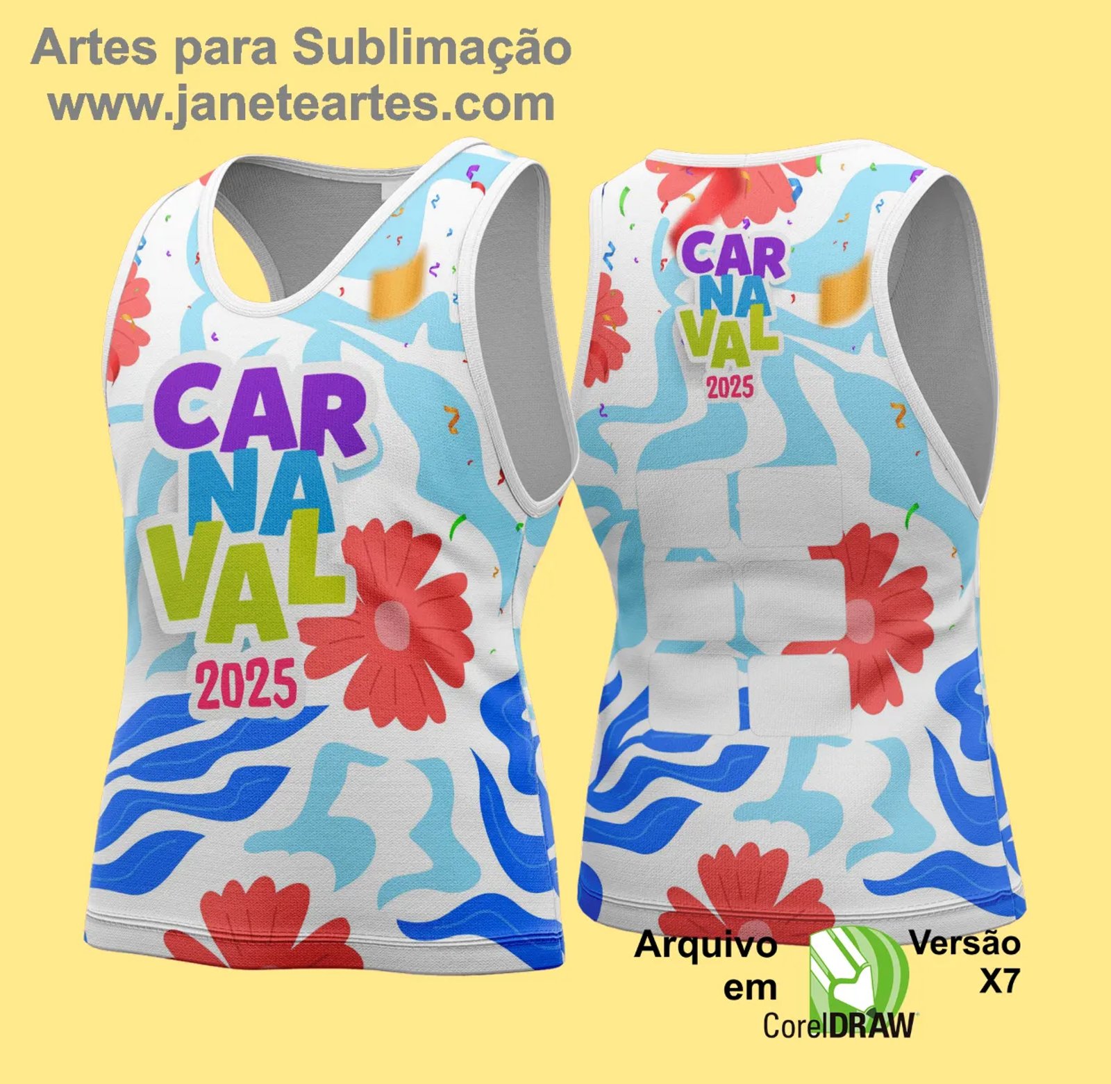 A arte foi desenvolvida pensando em profissionais que trabalham com sublimação e outras técnicas de impressão, garantindo qualidade e versatilidade para a criação de abadás temáticos e impactantes.