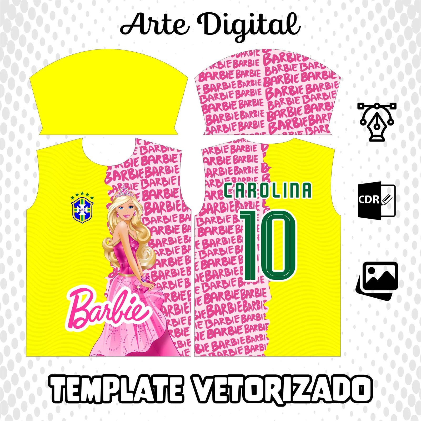 Parágrafo 14: Ao adquirir a Arte Vetor Camisa Barbie Brasil 2023, você tem a garantia de um arquivo digital de alta qualidade que será entregue com rapidez e eficiência via e-mail ou WhatsApp.