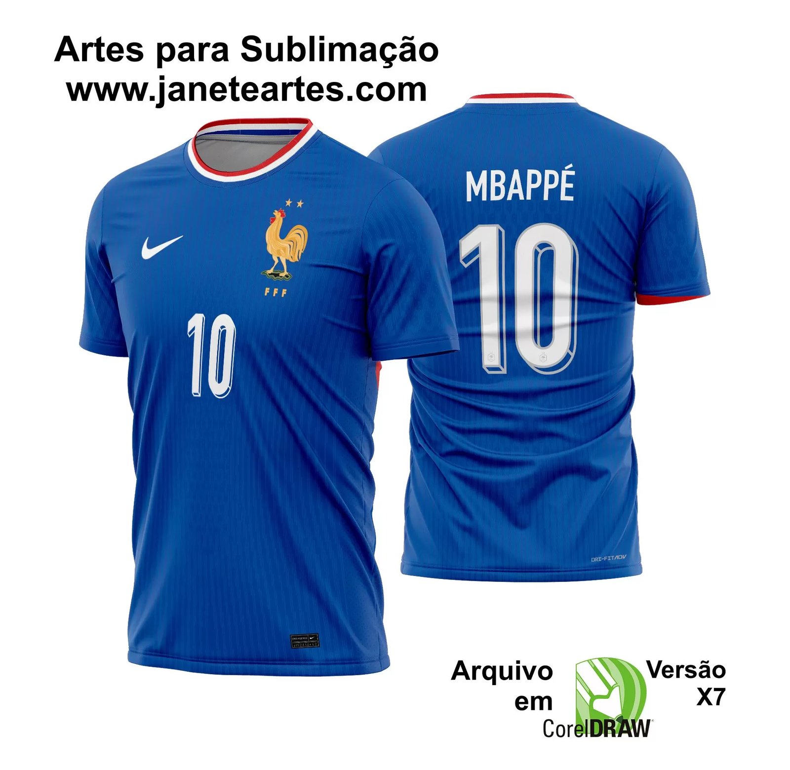 Além disso, ao adquirir a Arte Vetor Camisa França 2024 - 2025, você se beneficia de um produto digital fácil de manusear e aplicar. Disponível em formato CDR, o arquivo pode ser ajustado às suas necessidades específicas, permitindo uma personalização sem limites. Transforme sua visão em realidade e deixe que a moda francesa inspire seus projetos de sublimação.