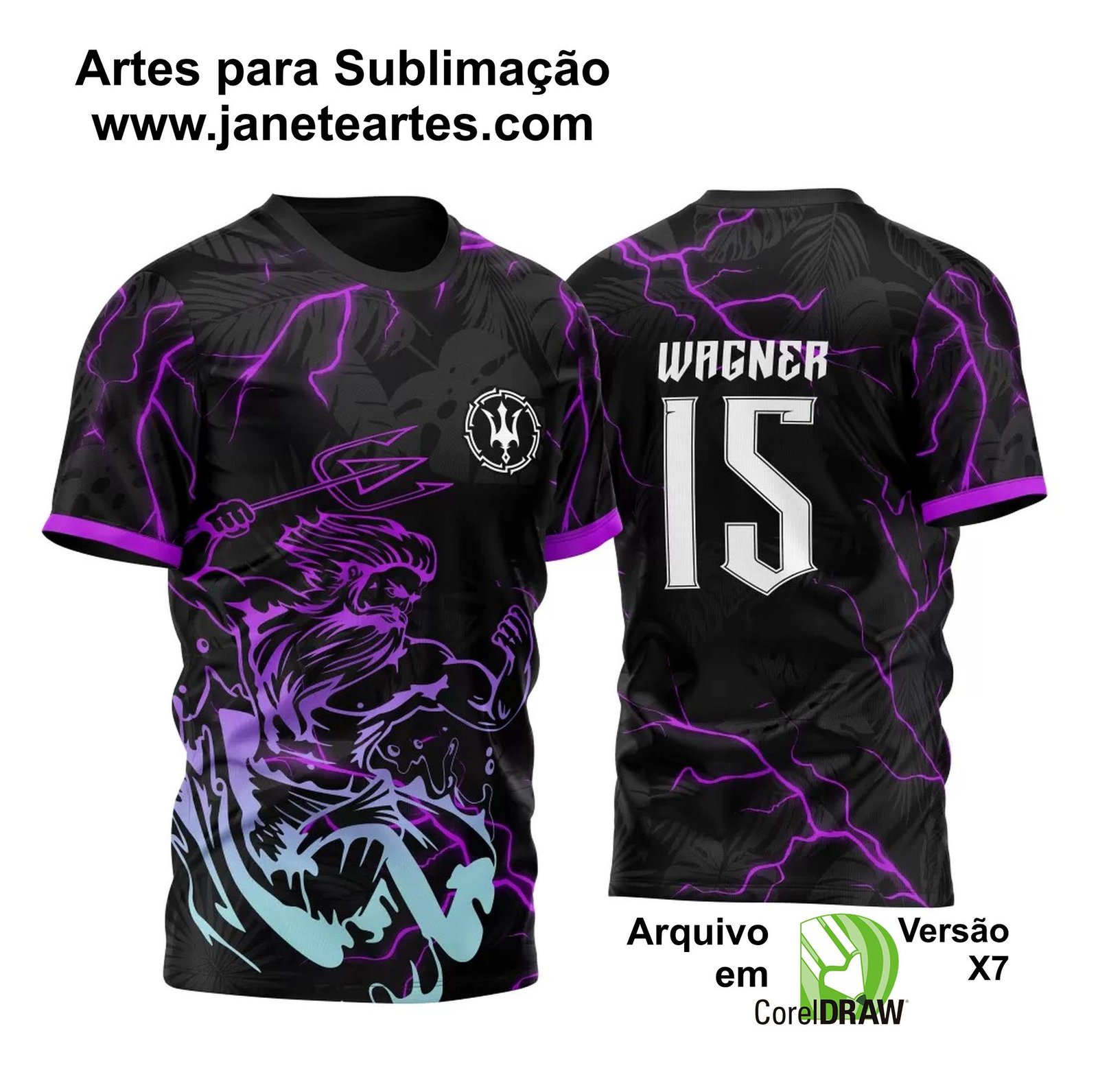 Cada elemento deste design foi cuidadosamente pensado para criar uma conexão profunda entre a equipe e o espírito combativo e poderoso de Poseidon. Os raios adicionam um toque de energia e dinamismo à estampa.
