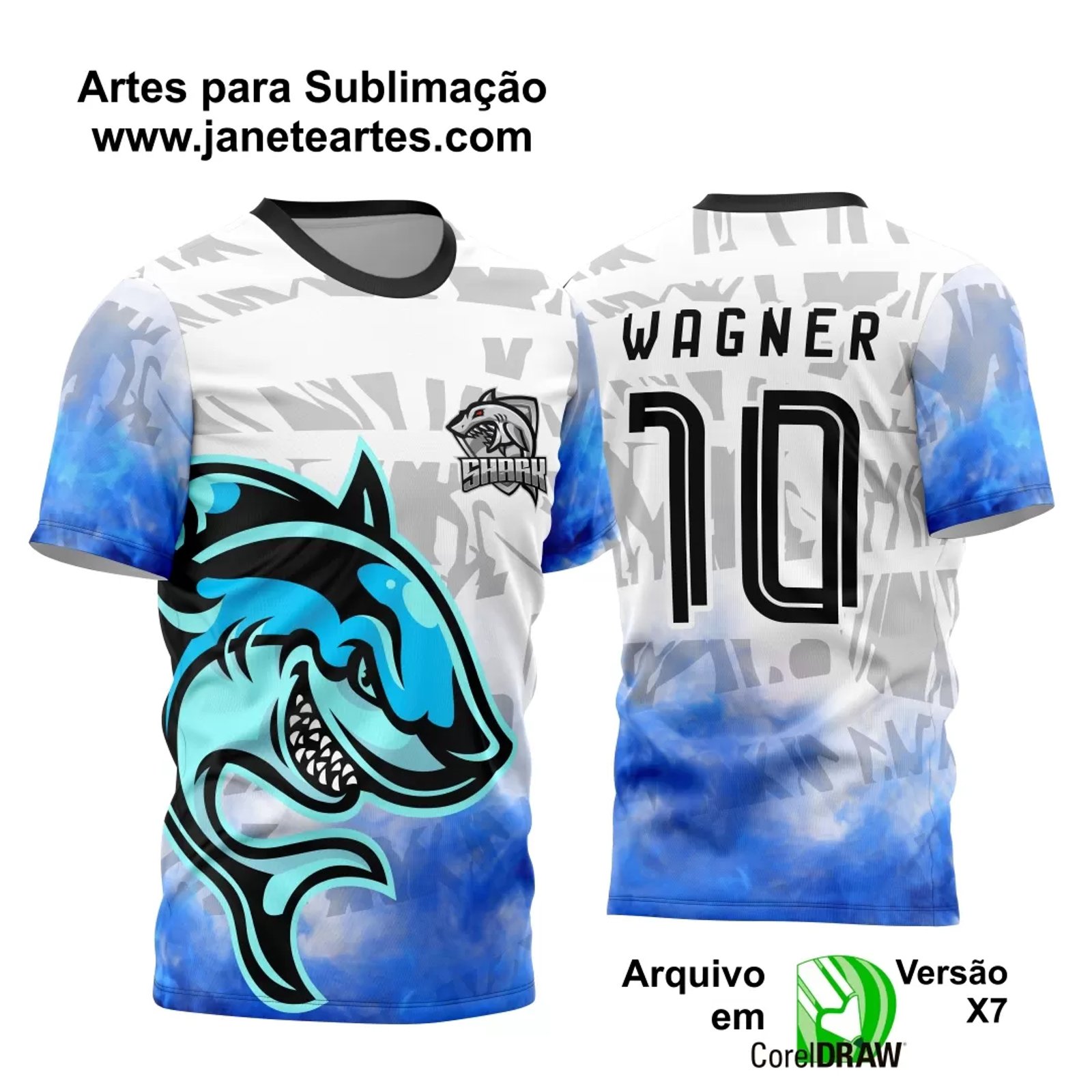Atenção: Este produto é um arquivo digital no formato CDR, enviado por e-mail e estará disponível na área do cliente do site para download após a confirmação do pagamento. A Arte Vetor Camisa InterClasse Tubarão é uma celebração da força, determinação e espírito de equipe, representada pelo majestoso predador dos mares.