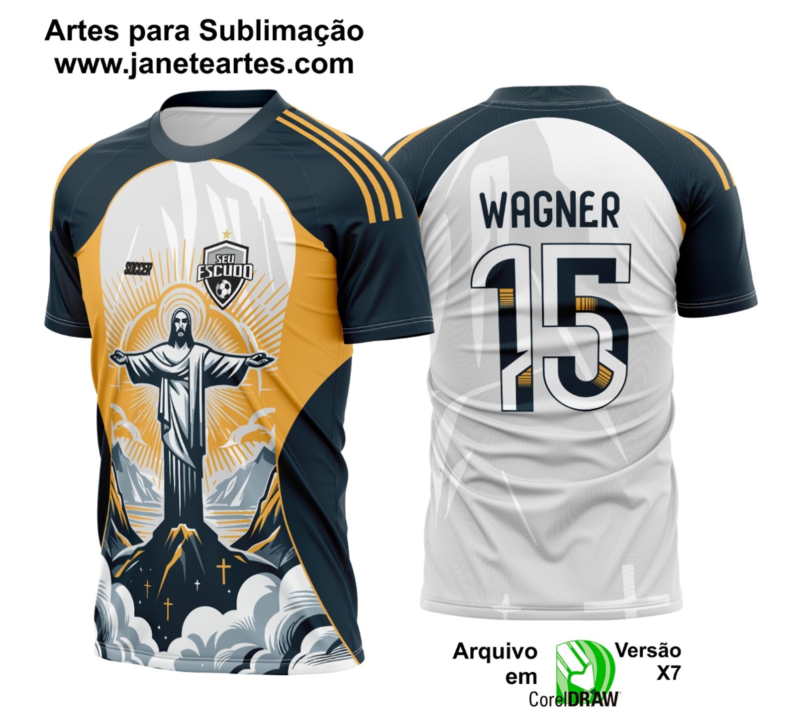 Uma das maiores vantagens da Arte Vetor Camisa Interclasse Cristo Redentor é a possibilidade de aplicá-la em diferentes produtos personalizados, como: