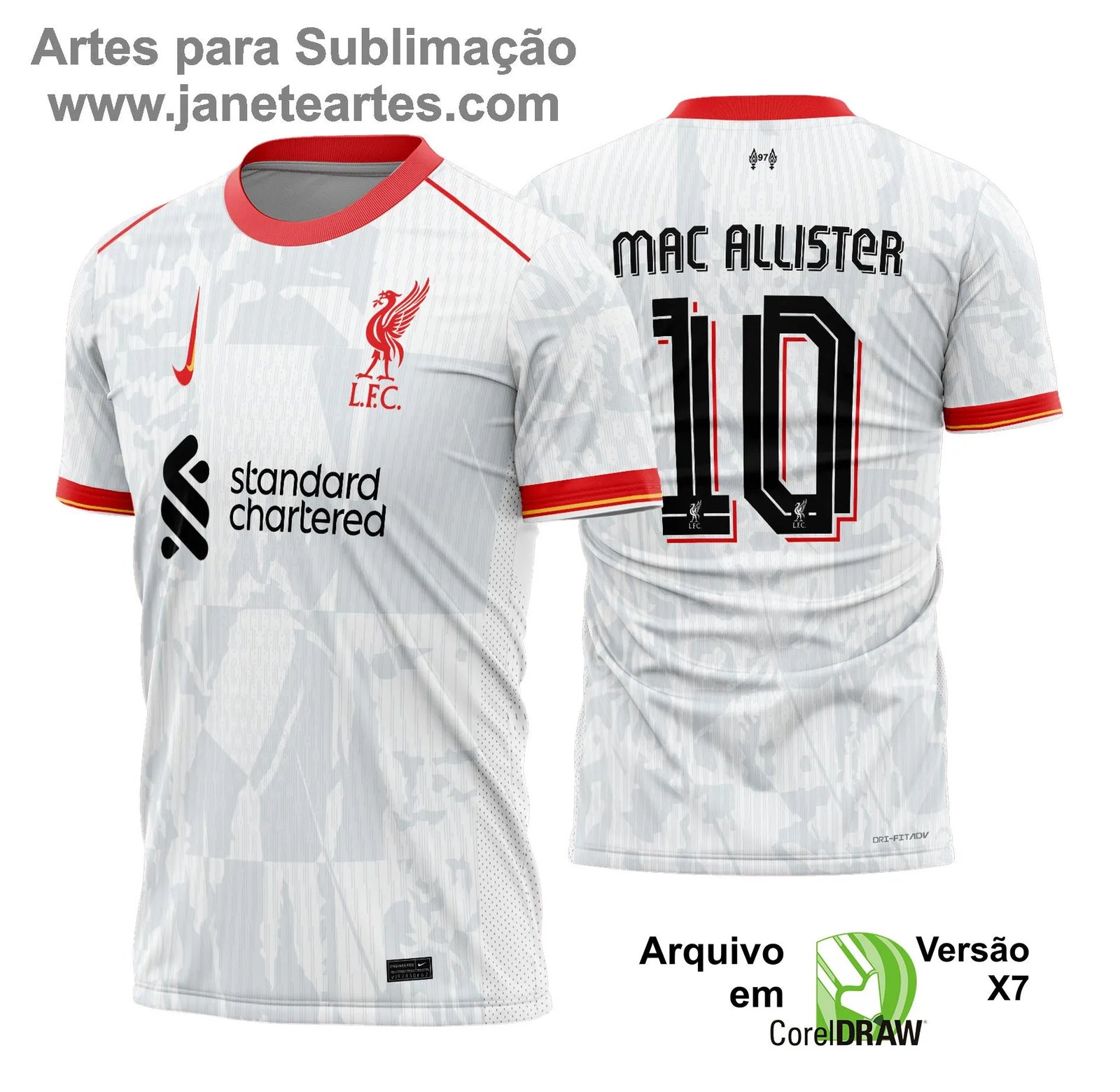 ⚠️ Atenção: Este é um produto digital. Após a confirmação do pagamento no site, você receberá a Arte Vetor Camisa Liverpool no formato CDR (.cdr x7) diretamente no e-mail cadastrado. O arquivo também ficará disponível na área do cliente para download sempre que desejar. Não há envio de produtos físicos.