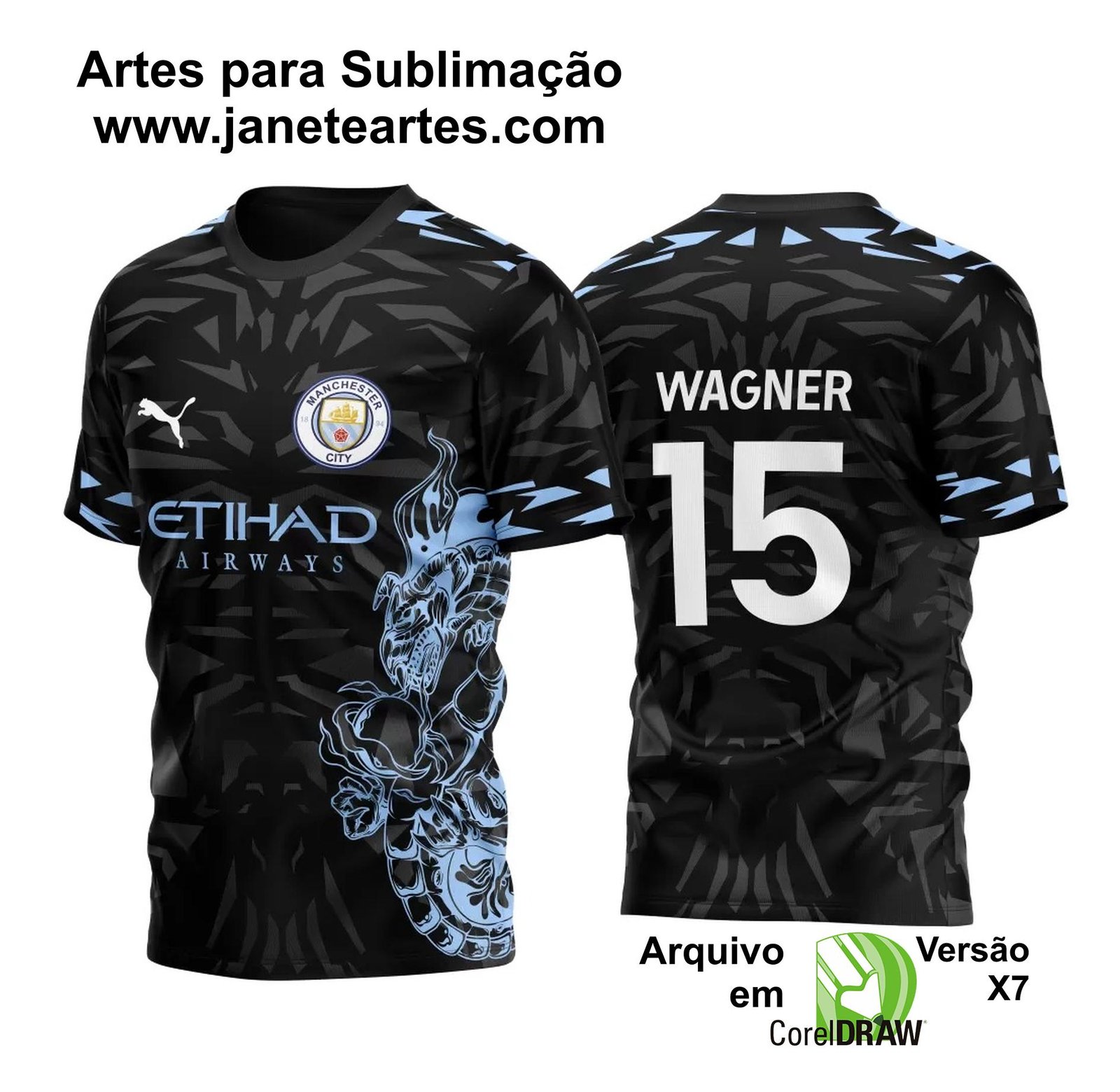 Com a técnica de sublimação, a Arte Vetor Camisa Manchester City 2023 Concept Dragón brilha em detalhes intricados e cores vibrantes, garantindo que cada peça personalizada seja uma obra-prima.