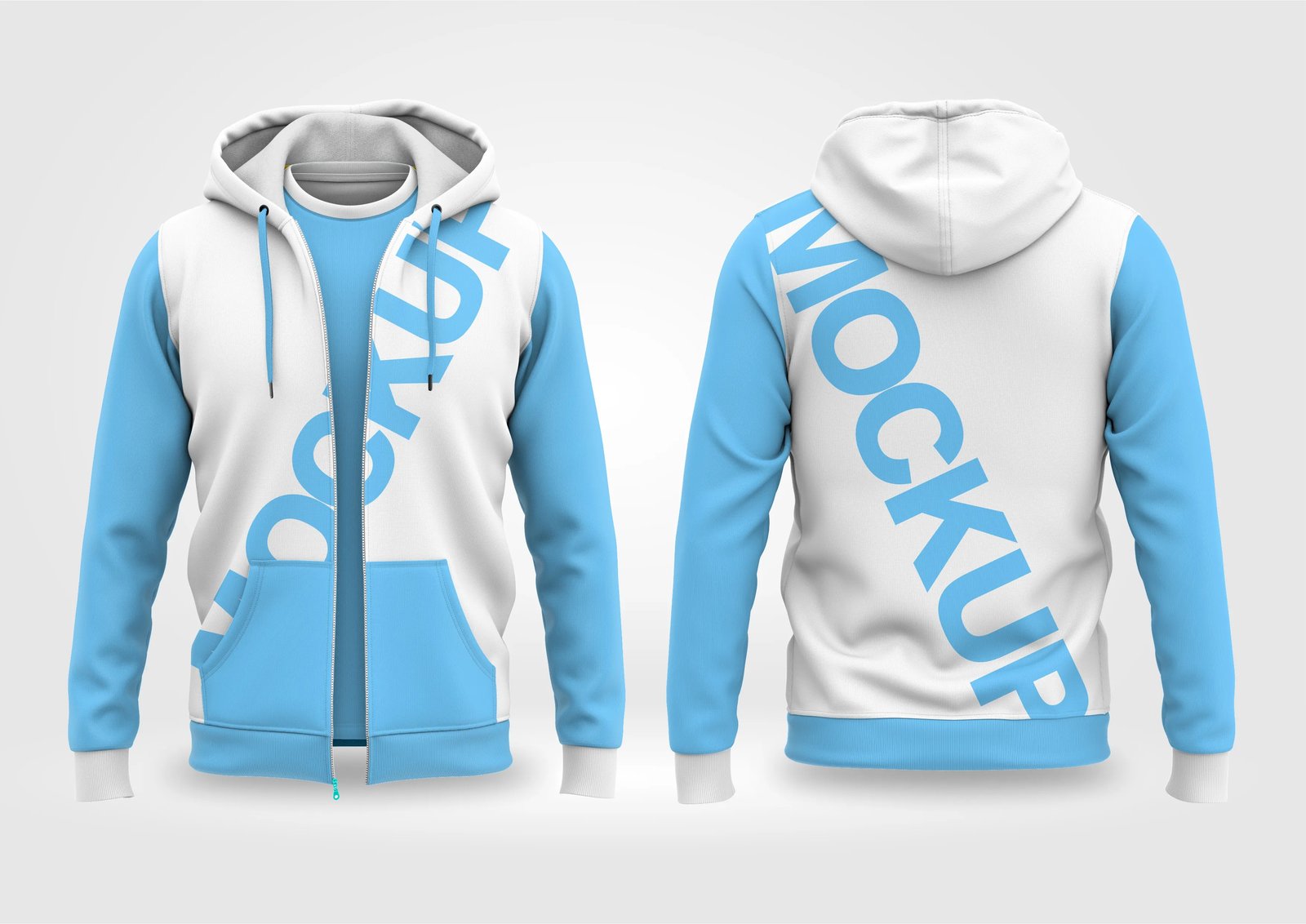 - Mockup completo da camisa/moletom com zíper para visualizar a personalização em realismo;