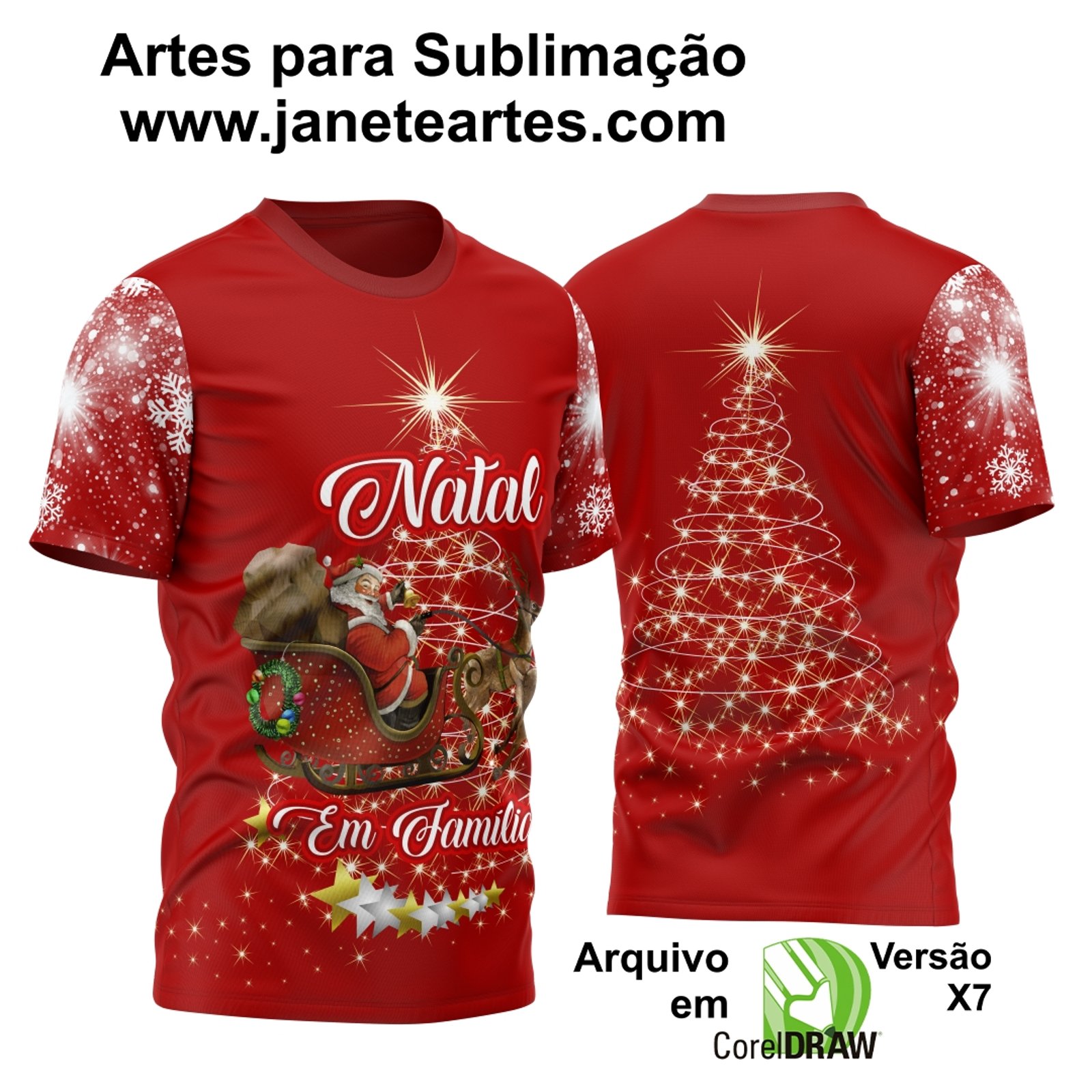 Nossa arte vetorizada é perfeita para ser aplicada em camisas através do método de sublimação, garantindo cores vibrantes e imagens de alta definição. Cada elemento do design foi cuidadosamente pensado para evocar o calor e a celebração típicos do Natal em Família.