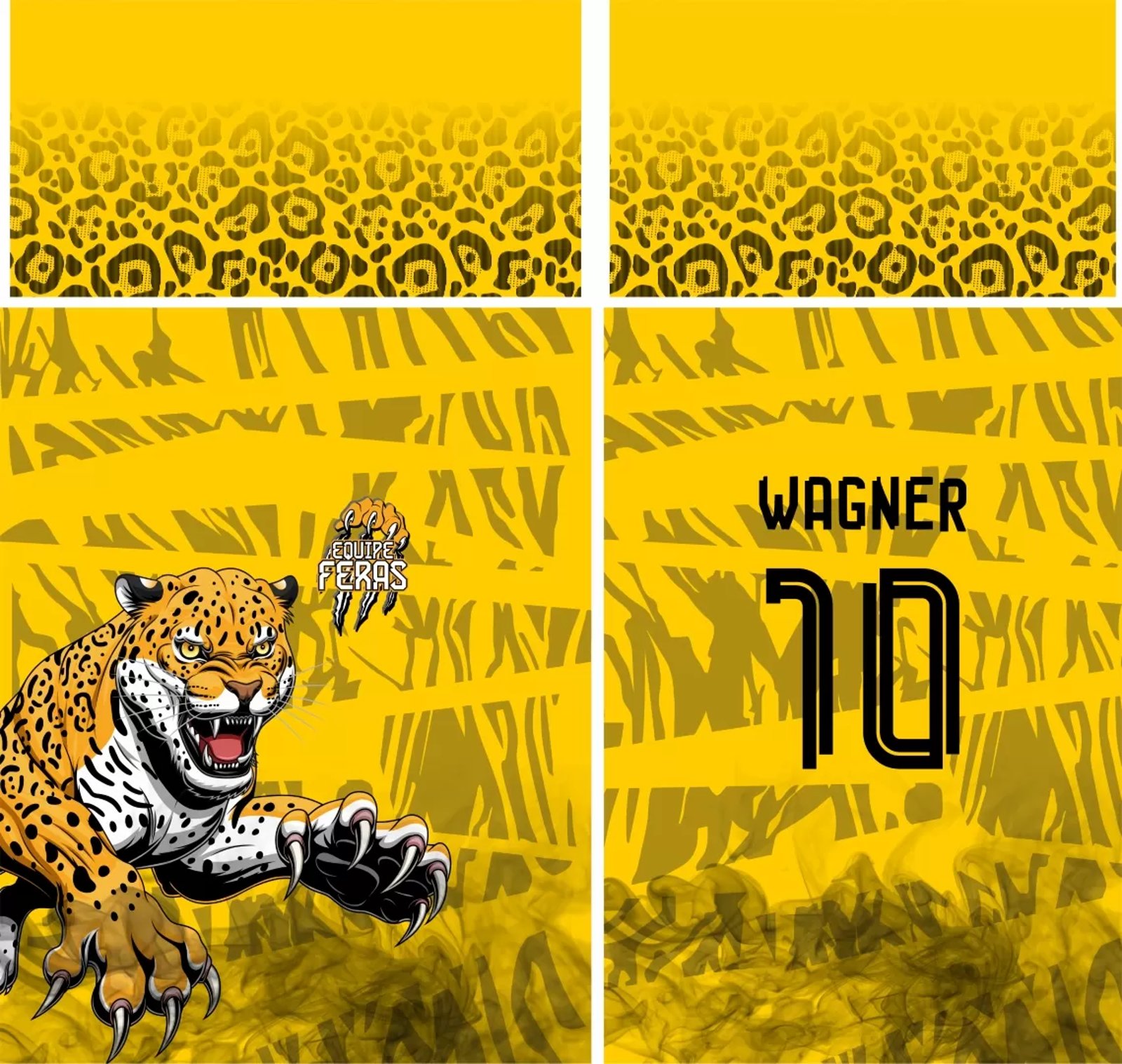 Transforme qualquer produto num verdadeiro destaque com a nossa Arte Vetor Camisa Onça Jersey Feras Amarela. Este é um design exclusivo que adicionará um toque de autenticidade a qualquer item.