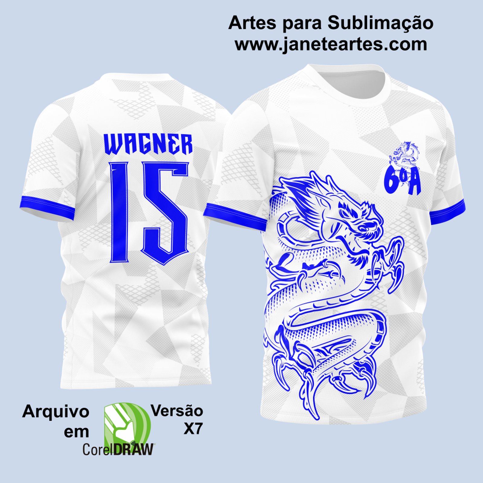 Arte Vetor Camisa Para Atlética Acadêmica e InterClasse Dragão Branca e Azul Sexto Ano 2023