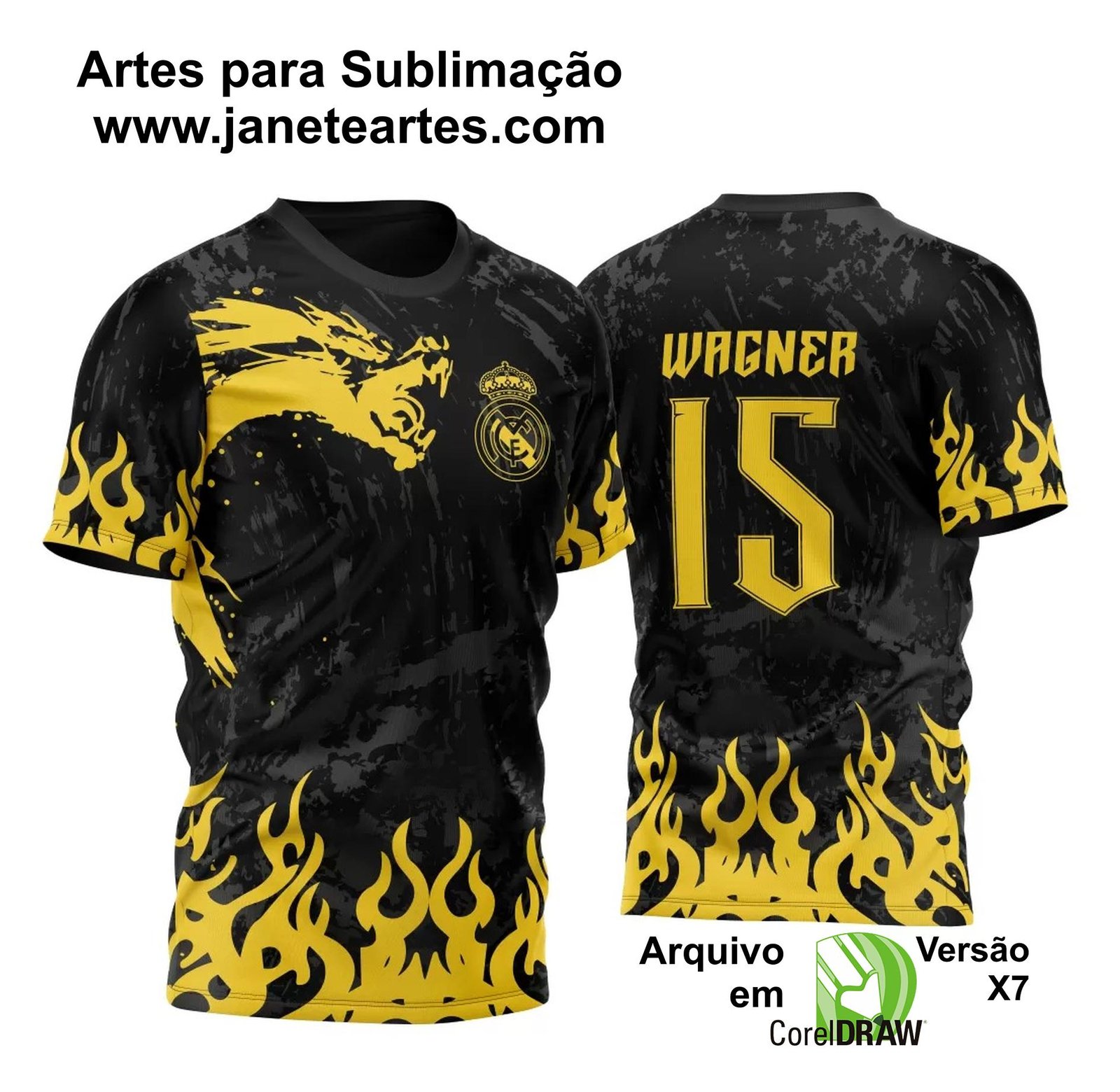 Imagine o orgulho e a satisfação de vestir uma camisa ou carregar um item que não apenas representa sua equipe, mas também conta uma história. Uma história de paixão, determinação e excelência. Tudo isso é possível com a Arte Vetor Camisa Para InterClasse Real Madrid Pincel Dragão 2023.