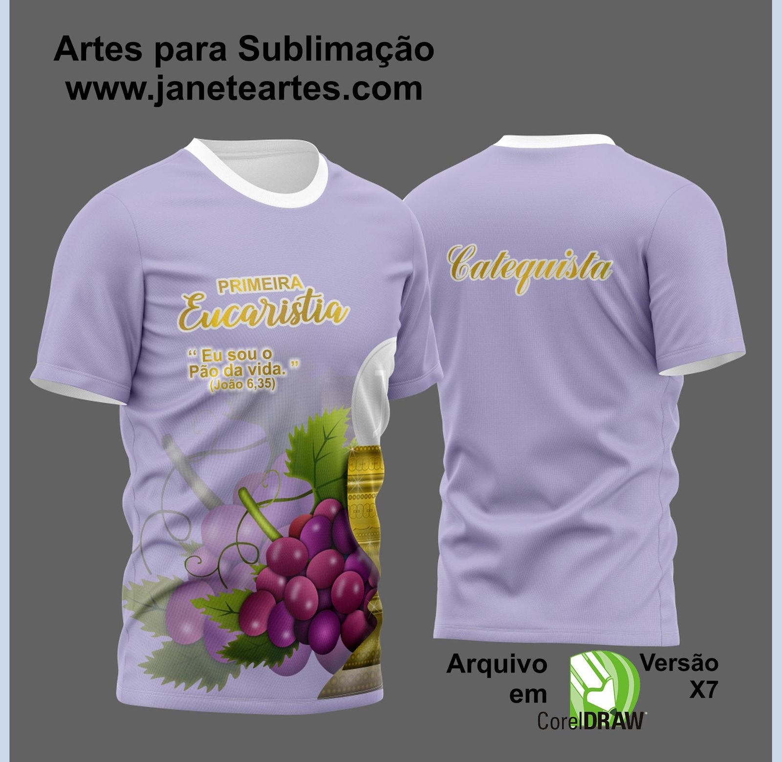 A versatilidade da nossa arte vetorial se destaca. Não se limite apenas a camisas! Expanda as possibilidades de personalização para tornar o dia da Primeira Comunhão ainda mais especial.