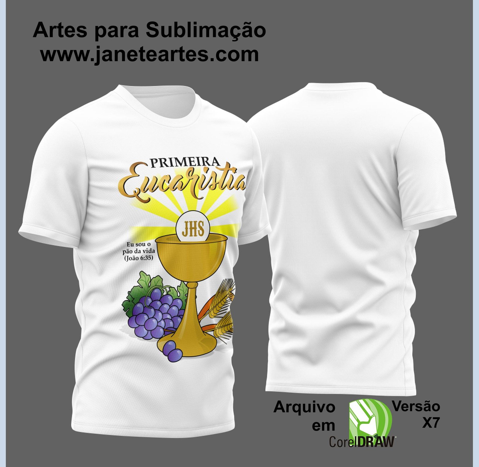 A versatilidade da nossa arte vetorial se destaca. Não se limite apenas a camisas! Expanda as possibilidades de personalização para tornar o dia da Primeira Comunhão ainda mais especial.