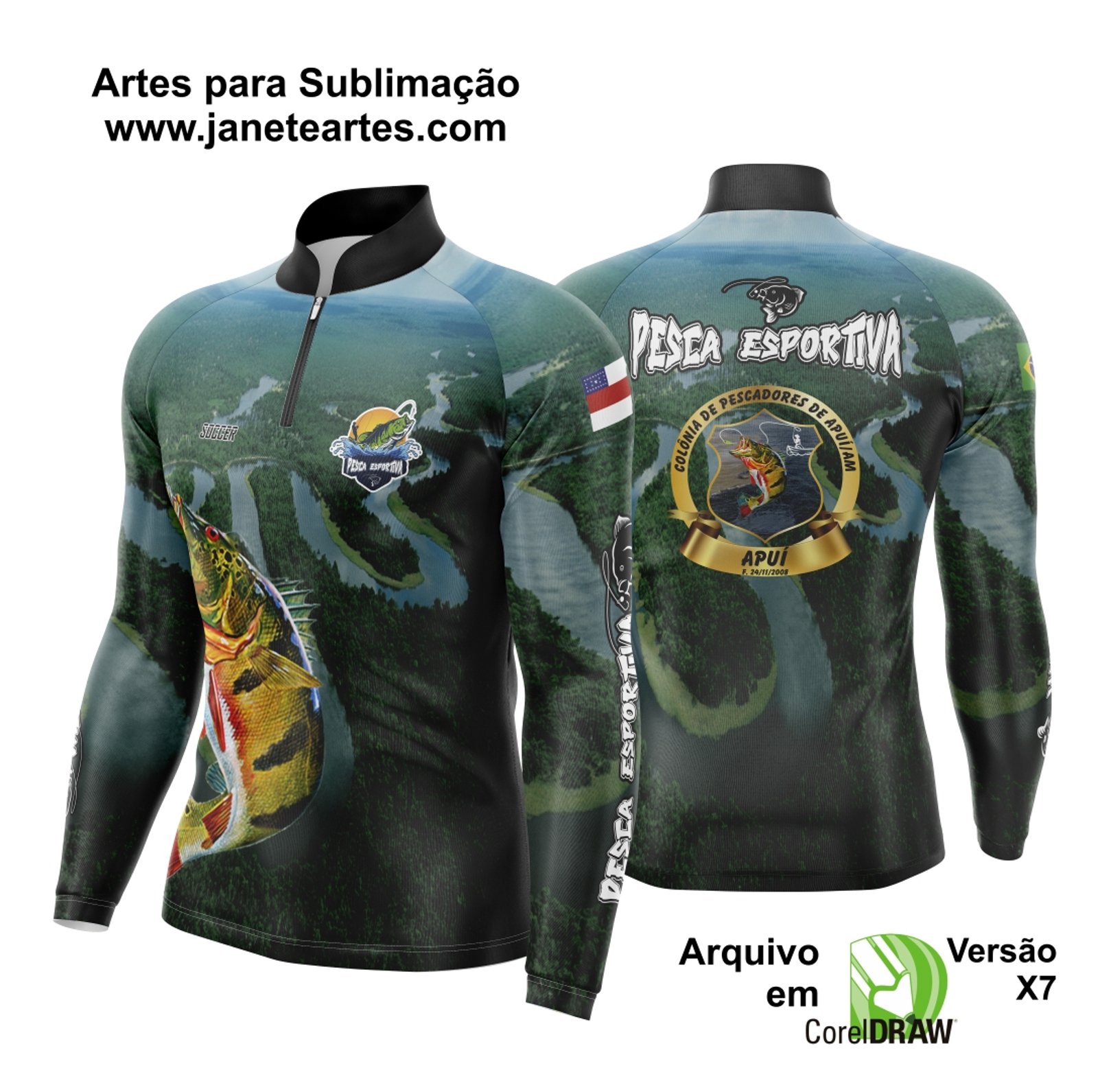 Apresentamos a Arte Vetor Camisa Pesca Esportiva, uma peça de design digital única, criada especialmente para os amantes da pesca e da natureza. Esta arte vetorial não é apenas uma imagem, mas uma expressão da paixão pela pesca, perfeitamente adaptada para a sublimação em camisas e outros itens personalizados.