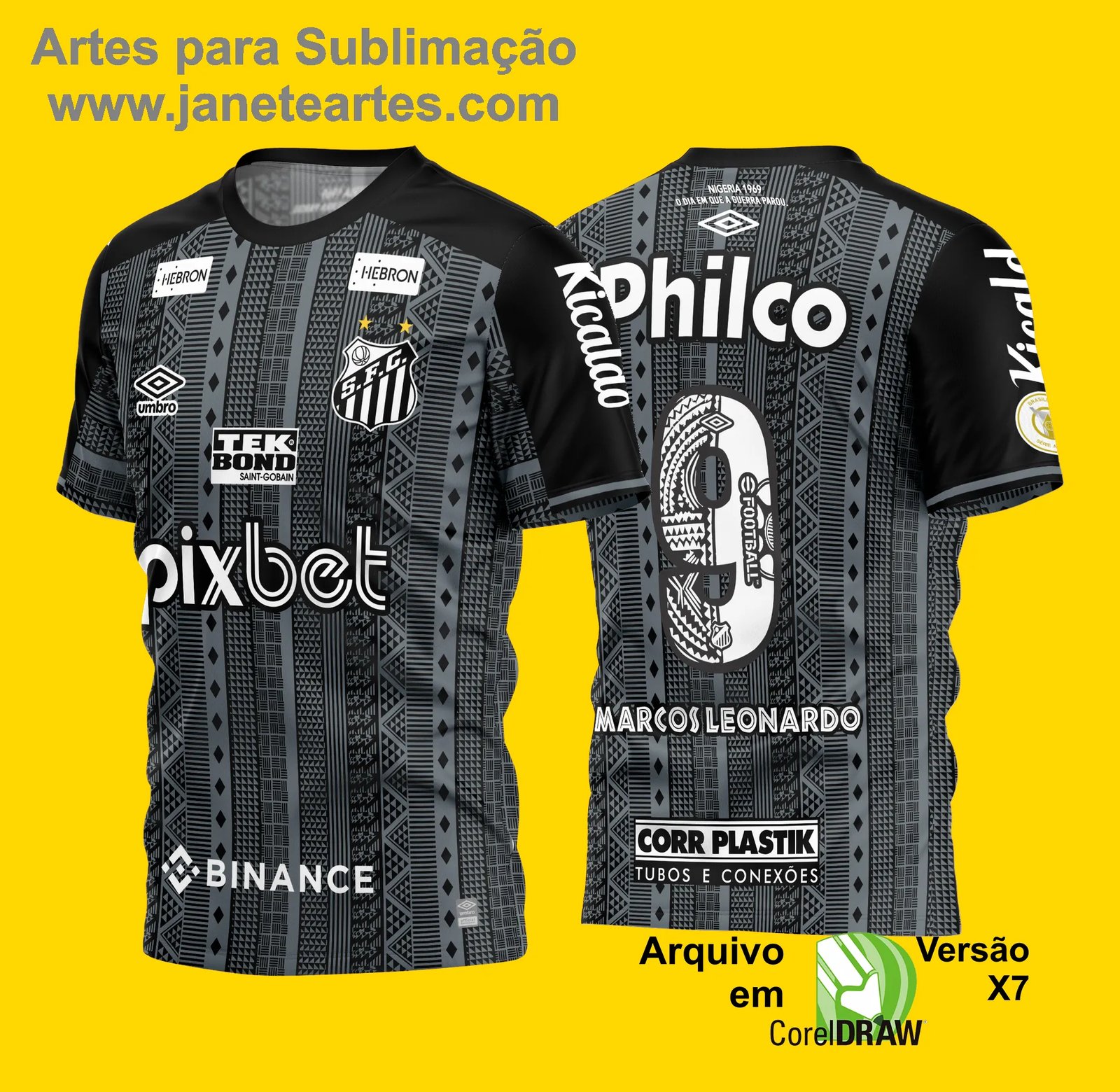 Um arquivo digital no formato CDR (.cdr x7), pronto para sublimação e personalização.