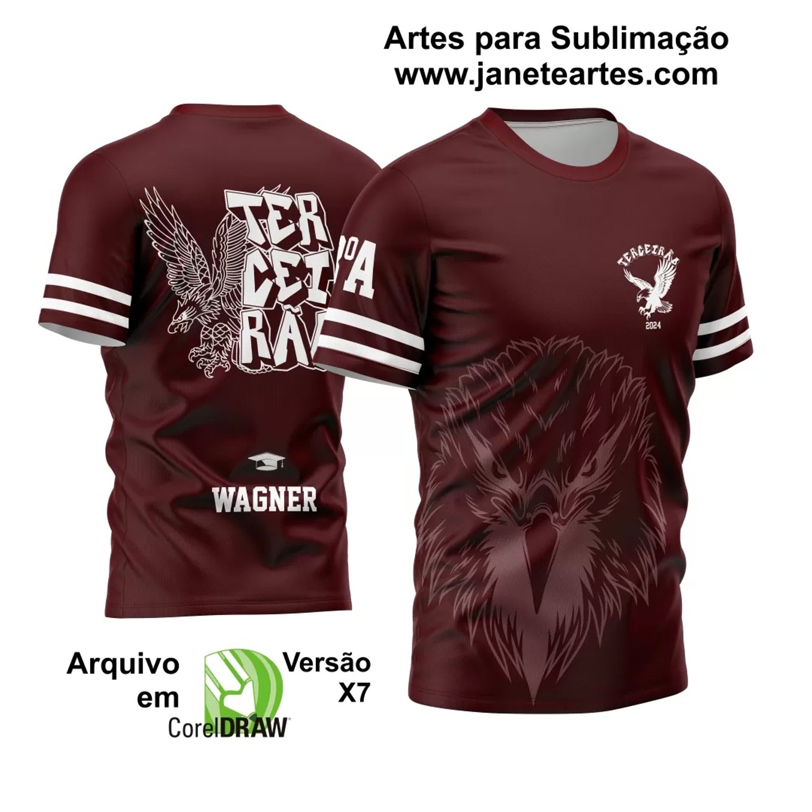 Atenção: Este produto é um arquivo digital no formato CDR (.cdr x7), destinado exclusivamente para uso em sublimação. Após a confirmação do pagamento no nosso site, o arquivo será enviado por e-mail e ficará disponível na área do cliente para download a qualquer momento. Garanta um destaque especial para a turma do Terceirão 2026 com nossa arte exclusiva Arte Vetor Camisa Terceirão Águia 2026.