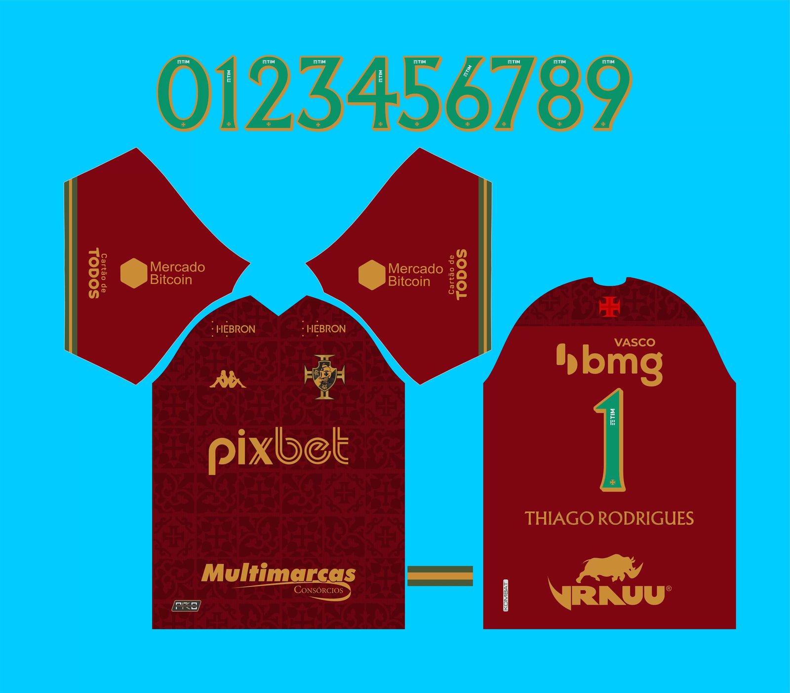 A arte é incrivelmente detalhada e fiel ao terceiro kit do time, garantindo que seu produto final seja um verdadeiro reflexo do amor pelo Vasco. Seja você um torcedor apaixonado ou um negócio de personalização, esta arte é o que você precisa para se destacar.