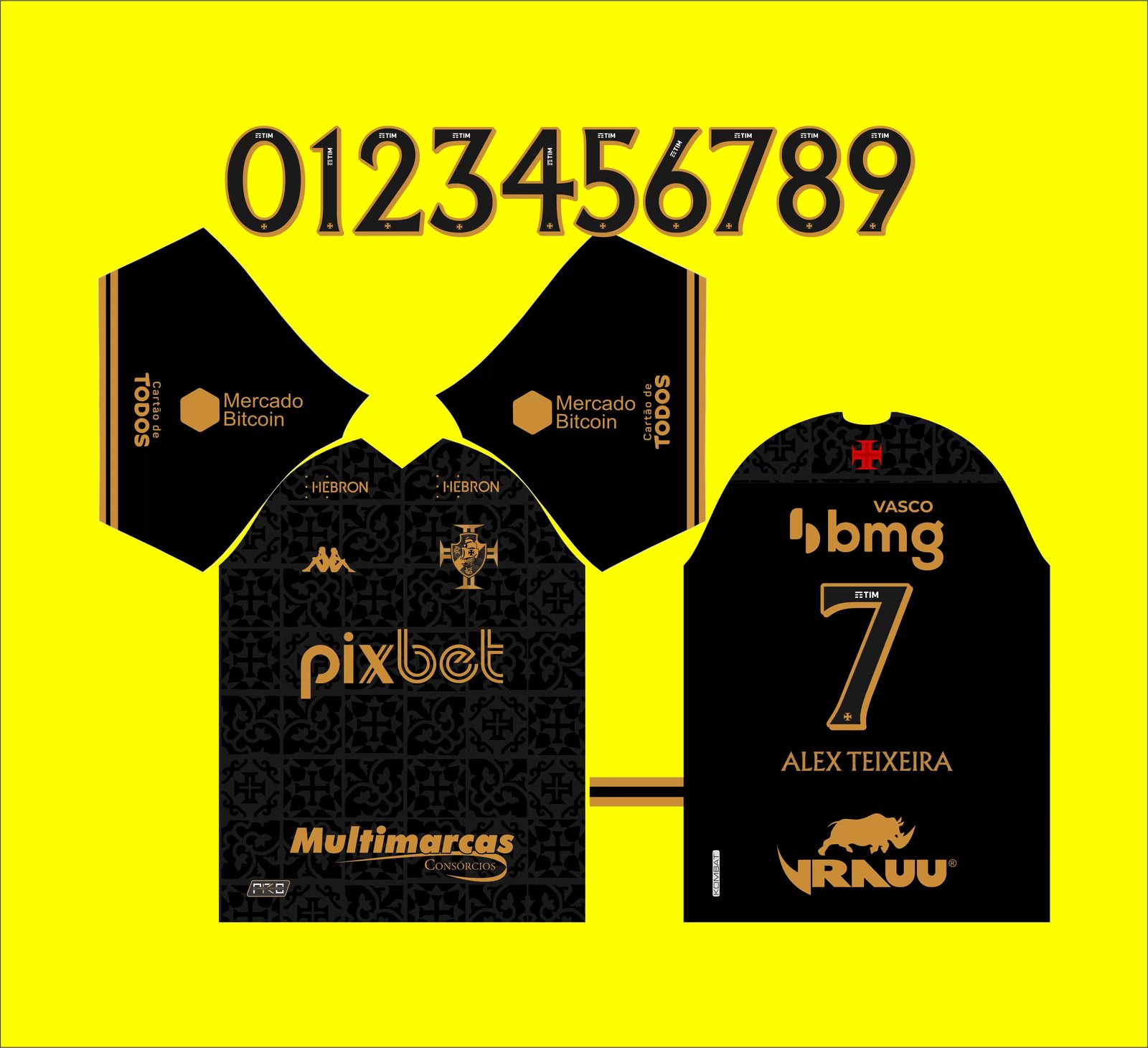 A arte é incrivelmente detalhada e fiel ao terceiro kit do time, garantindo que seu produto final seja um verdadeiro reflexo do amor pelo Vasco. Seja você um torcedor apaixonado ou um negócio de personalização, esta arte é o que você precisa para se destacar.