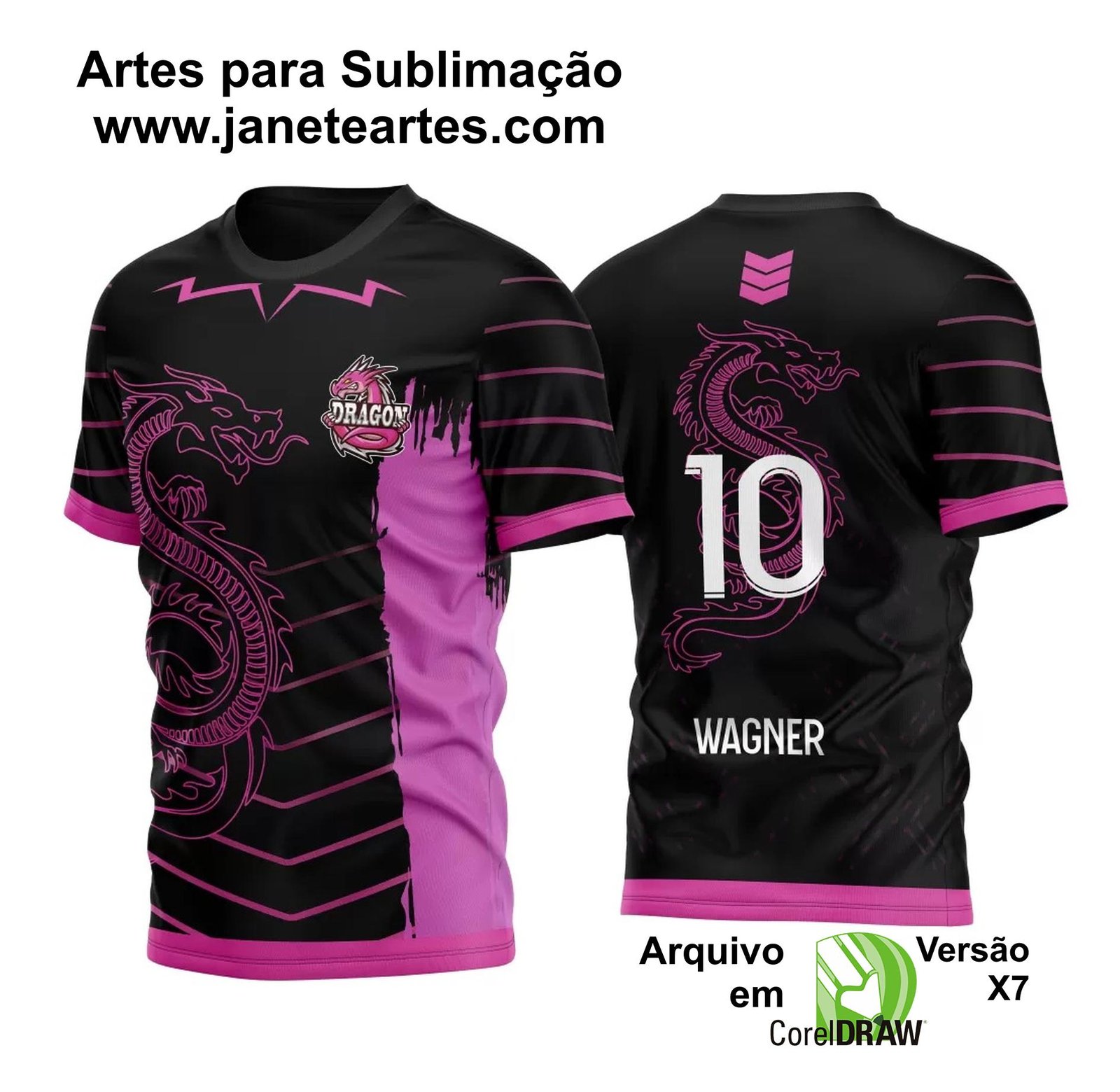 Arte Vetor Camisa de Interclasse Dragão Rosa Sublimação