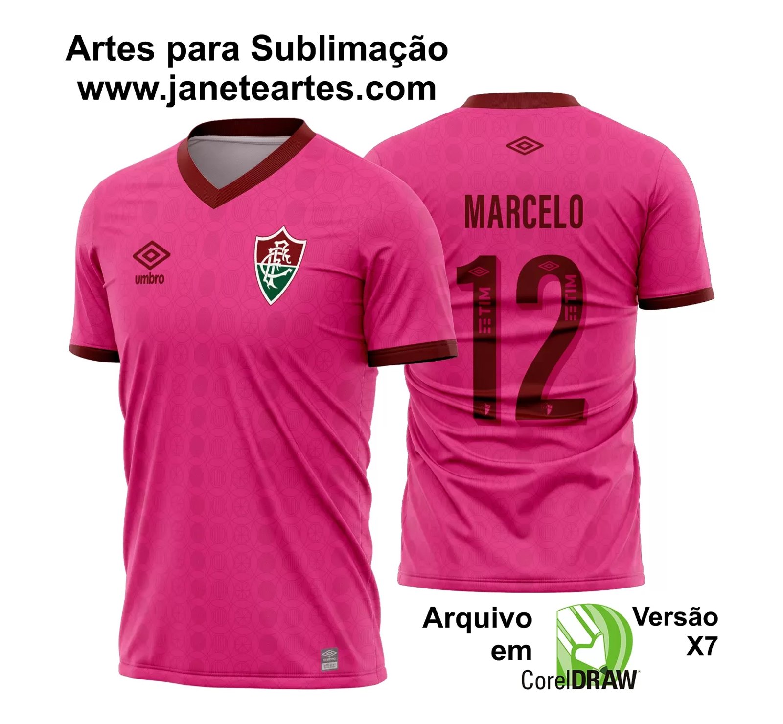 Esta arte é exclusiva? Sim, a Arte Vetor Estampa Camisa Fluminense Outubro Rosa 2023-24 é uma criação exclusiva, garantindo originalidade em seus produtos personalizados.