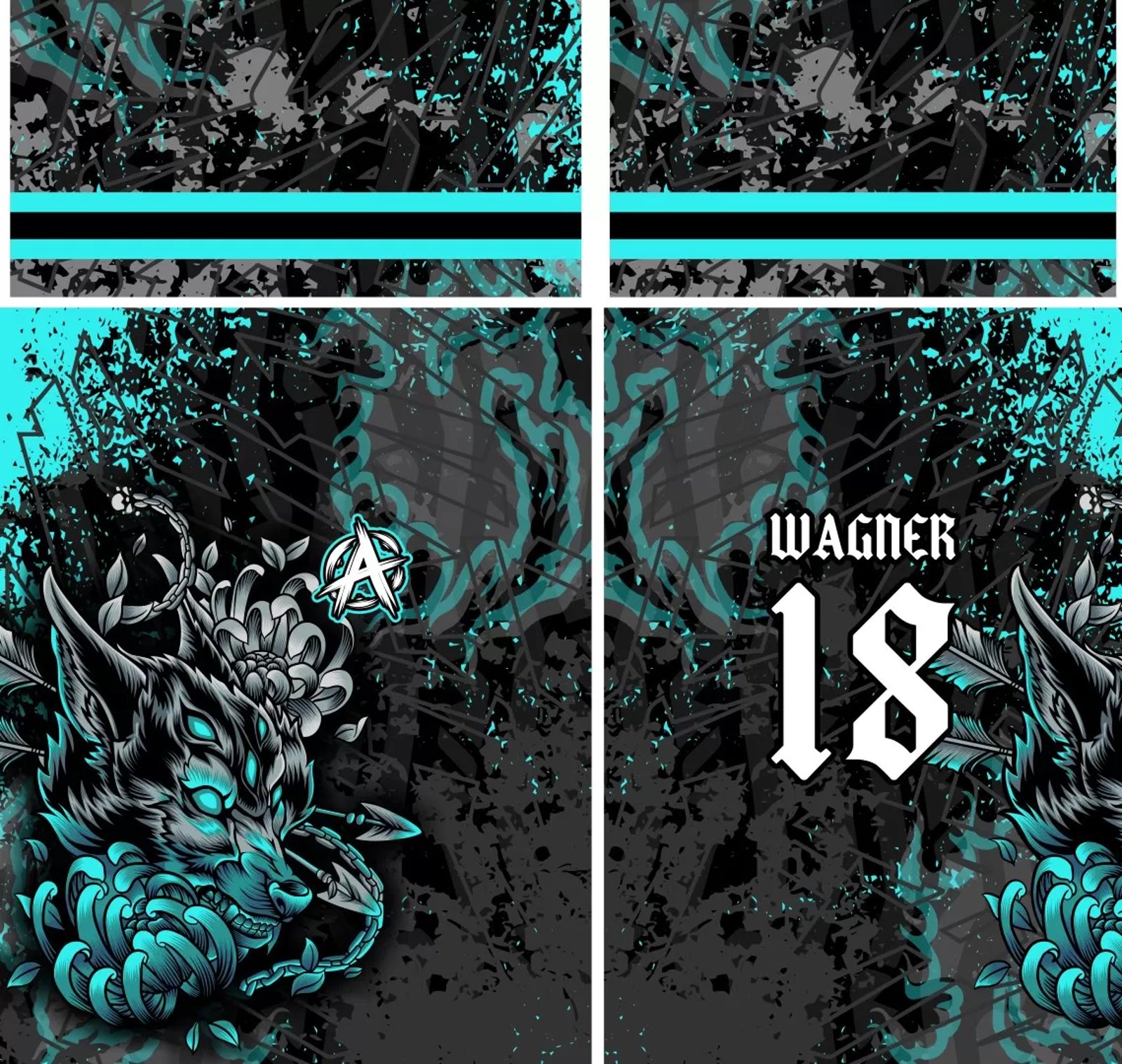 O Coiote, conhecido por sua astúcia e ferocidade, é o foco desta estampa. Combinado com flechas estilizadas, ele cria um design que representa determinação, união e espírito competitivo.