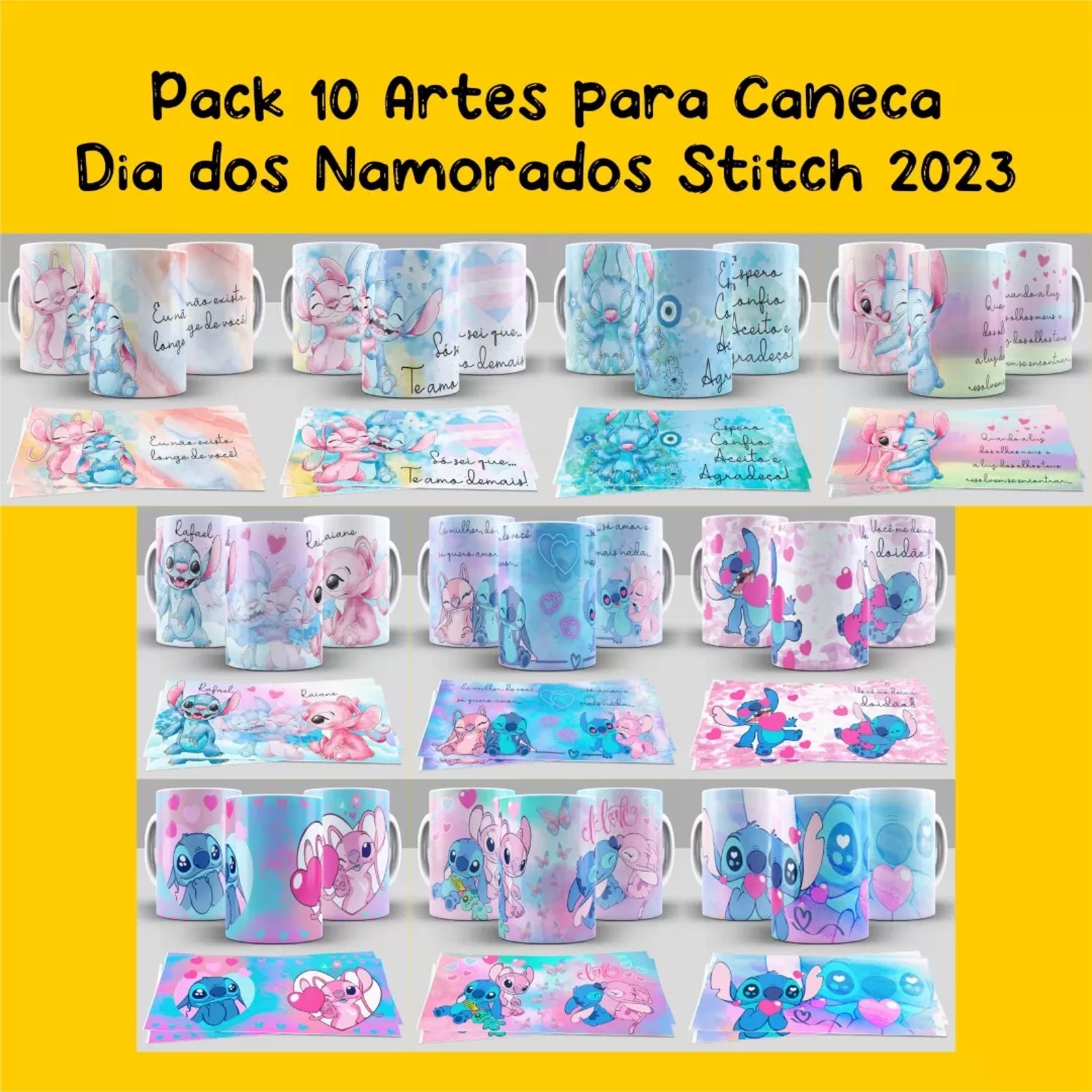 Arte para Caneca Dia dos Namorados Stitch - Personalize seu Presente com Amor 2023