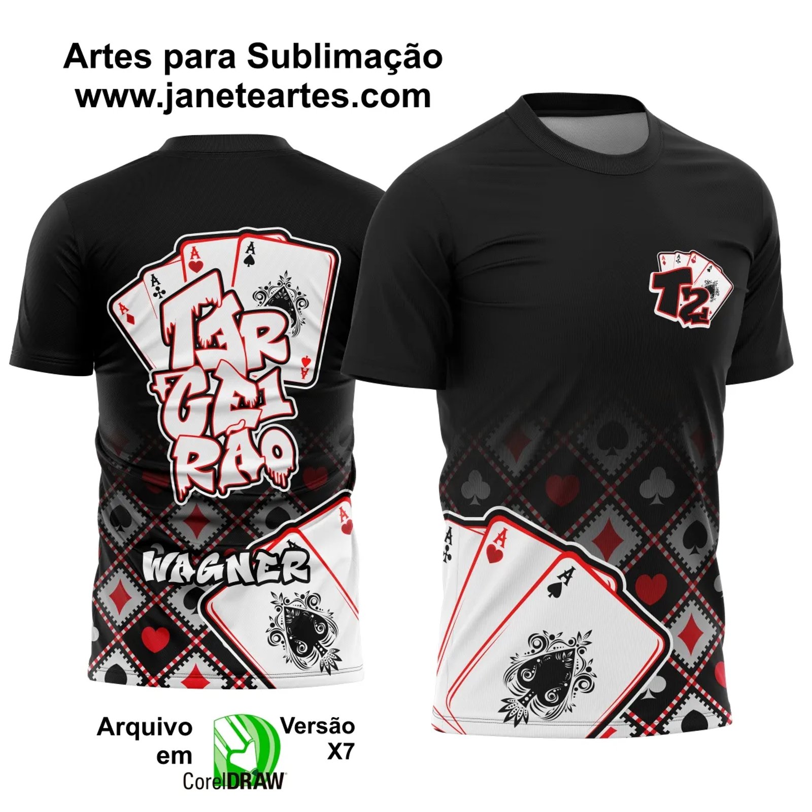 Use o arquivo digital para criar camisas personalizadas que representem sua turma com originalidade. O tema de cartas é ideal para quem quer algo divertido e único.